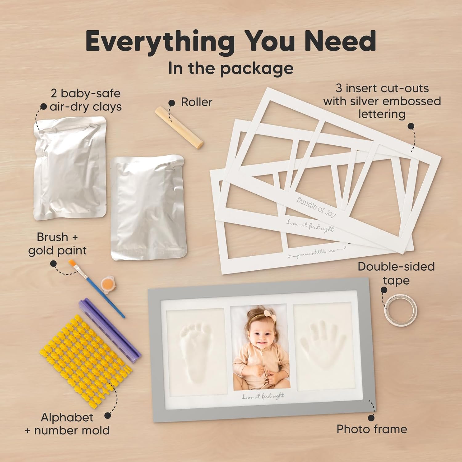 Baby Hand and Footprint Kit - Clay Handprint Keepsake Frame, Newborn Nursery Picture Frame, Personalized New Mom Gifts for Baby Shower & Registry (Cloud Gray)