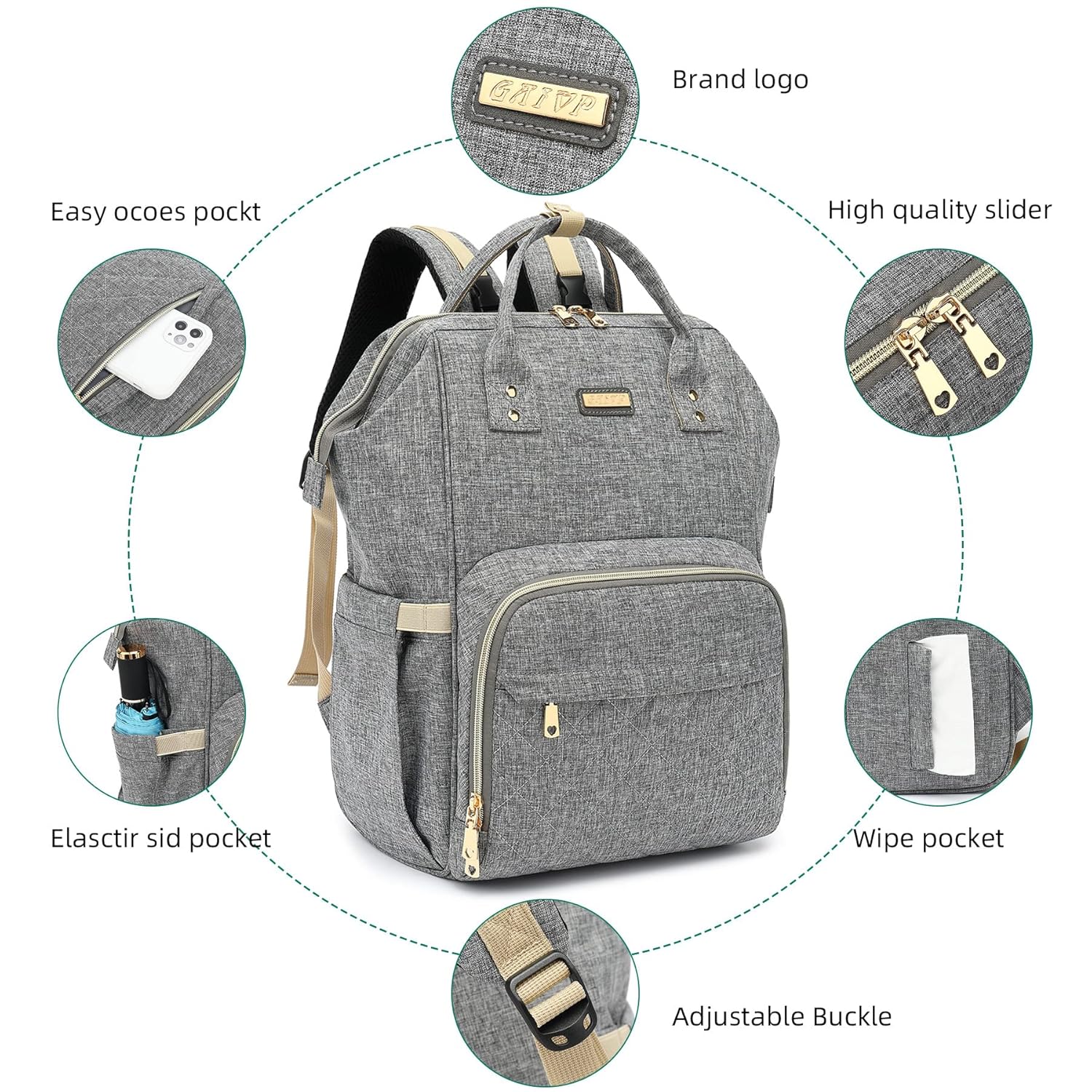 - Get ready for a fun day out with GAIVP Premium Diaper Bag backpack. The smart, functional, and spacious design maximizes storage space so that you can pack everything you need for yourself and your baby. our Multifunctional pañalera instantly exudes style effortlessly. The neutral and earthy duotone exterior is unisex and makes it easy to match with any everyday outfit