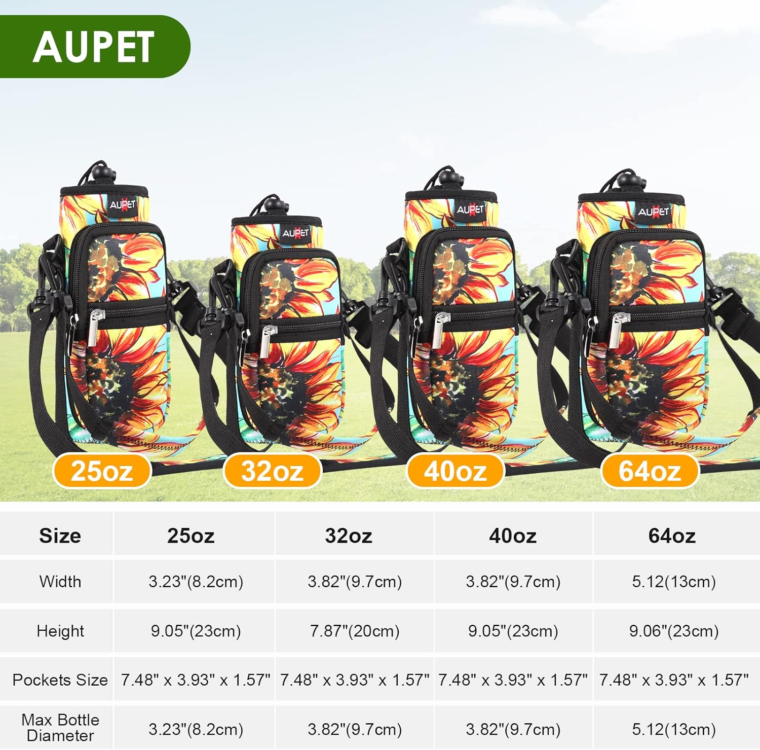 • AVAILABLE IN FOUR SIZES:Our AUPET water bottle crossbody bags has four sizes for you to choose,25oz/32oz/40oz/64oz,please refer to the picture to choose the right size<br/>