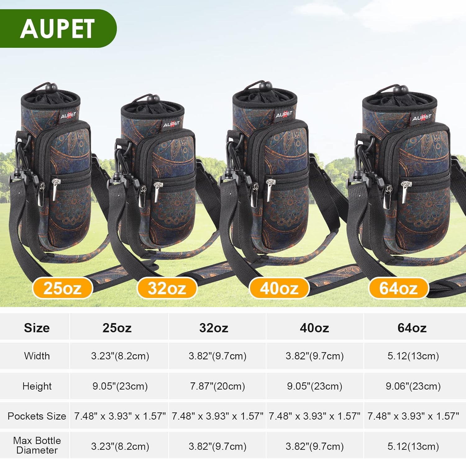 - AVAILABLE IN FOUR SIZES:Our AUPET water bottle crossbody bags has four sizes for you to choose,25oz/32oz/40oz/64oz,please refer to the picture to choose the right size<br/>