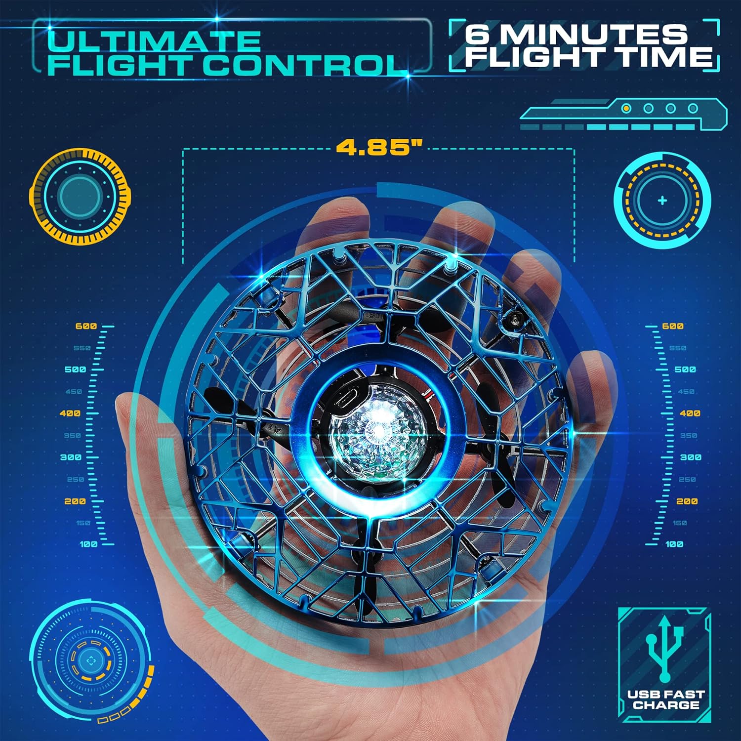 - 360° Rotating Flight Design: Fly this mini UFO drone toy with your hands! Place both hands on both sides of the drone, swipe a hand under when the lights start to blink rapidly, and watch this LED drone perform a 360° flip!
