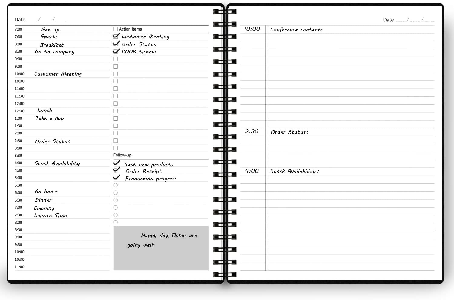 - KEEP FOCUSED & ACHIEVE YOUR GOALS - This daily organizer with appointments from 7:00 AM to 11:00 PM in 30-minute intervals, allows you to keep track of every appointments, action items and follow-ups with space for your top goals and task. This to do list planner could help you to save time and achieve your goals