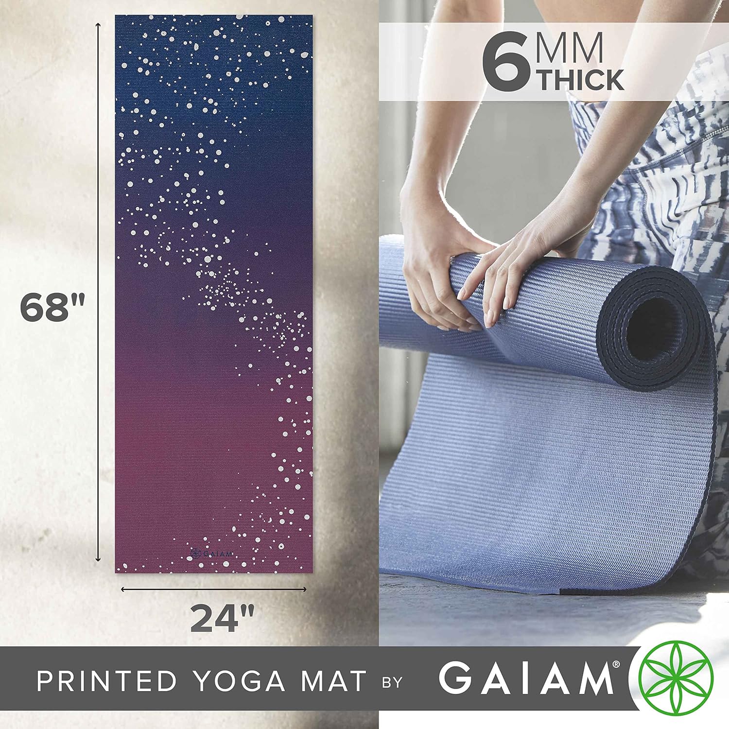 Gaiam Yoga Mat - Premium 6mm Print Extra Thick Non Slip Exercise & Fitness Mat for All Types of Yoga, Pilates & Floor Workouts (68"L x 24"W x 6mm Thick)