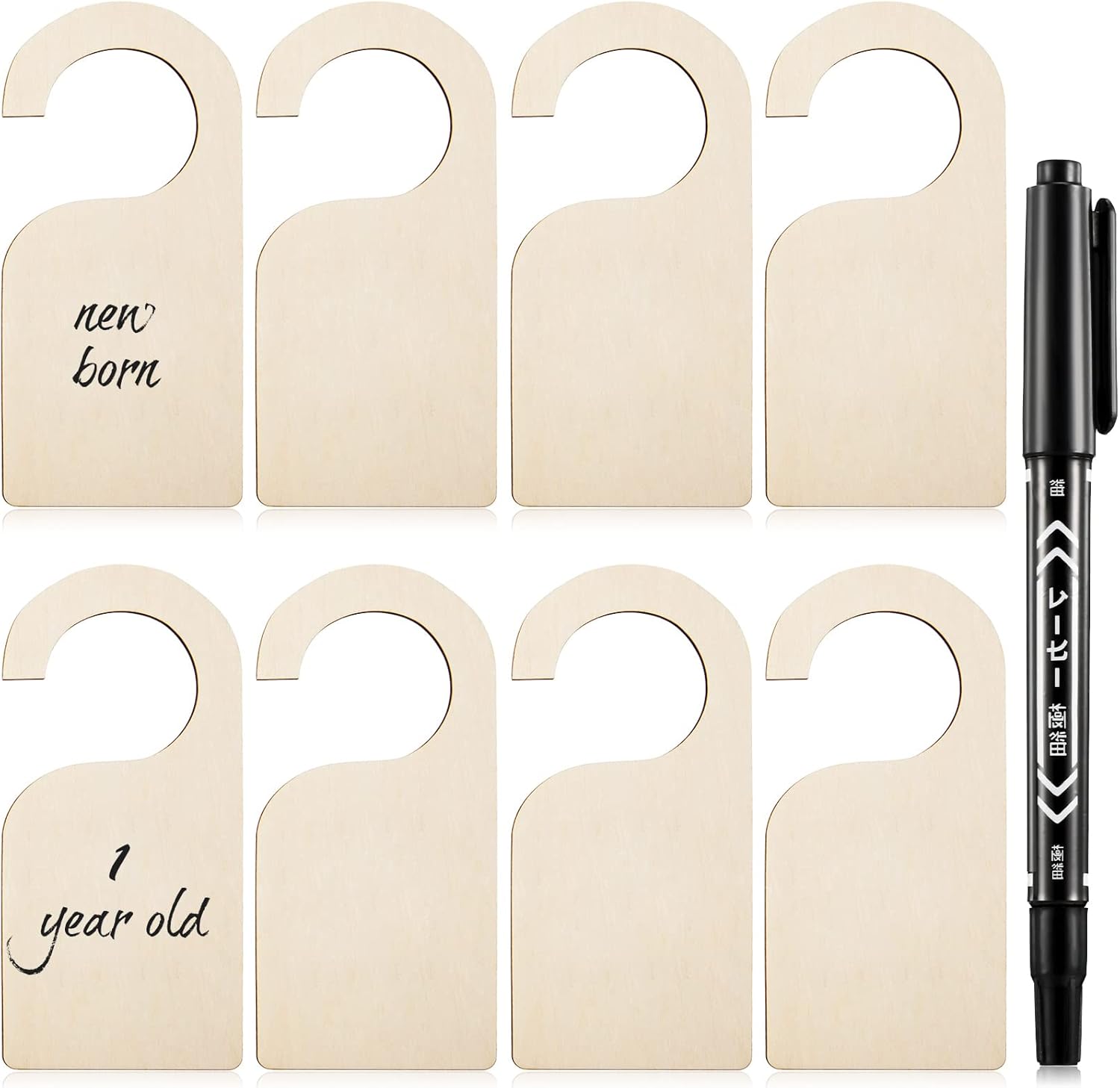 Patelai 25 Pieces Blank Wooden Clothing Rack Divider Closet Blank Organizers Hanger Separators Hanging Closet Divider with Marker Pen for Home Nursery Clothes