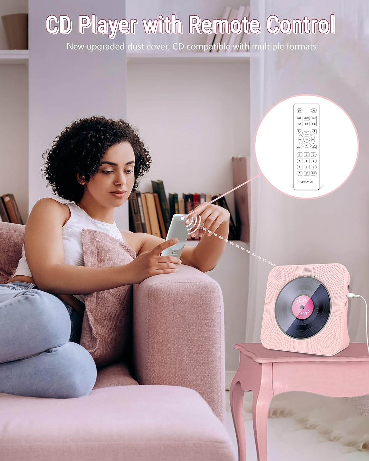 - Newest CD Player with Remote Control:With desktop vertical design,this CD player upgrades with a transparent protective cover to keep your CDs from dust. This portable CD player supports multiple CD formats-CD;CD-R;CD-RW;MP3;WMA, enabling you to freely listen to your treasure collection of CDs or the CDs from your idols at home.Equipped with a remote control,it is convenient for you to control the CD player eventhough you are not arround it.You also can listen the music via USB or AUX mode