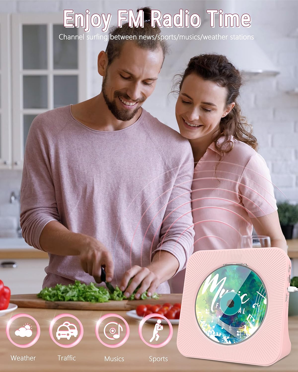- Enjoy FM Radio Time:A LED screen is equipped on the top of the Bluetooth CD player, that you can choose the five modes(CD;Bluetooth;FM;AUX;USB) on the LED screen. Press the button to switch to the FM mode,and you can listen to the weather information,news,traffic and music from every channels at your leisure.The repeat function makes the songs/sections to be repeated under your setting.What a wonderful CD player it is,just call some friends to enjoy the happy time with this portable CD player