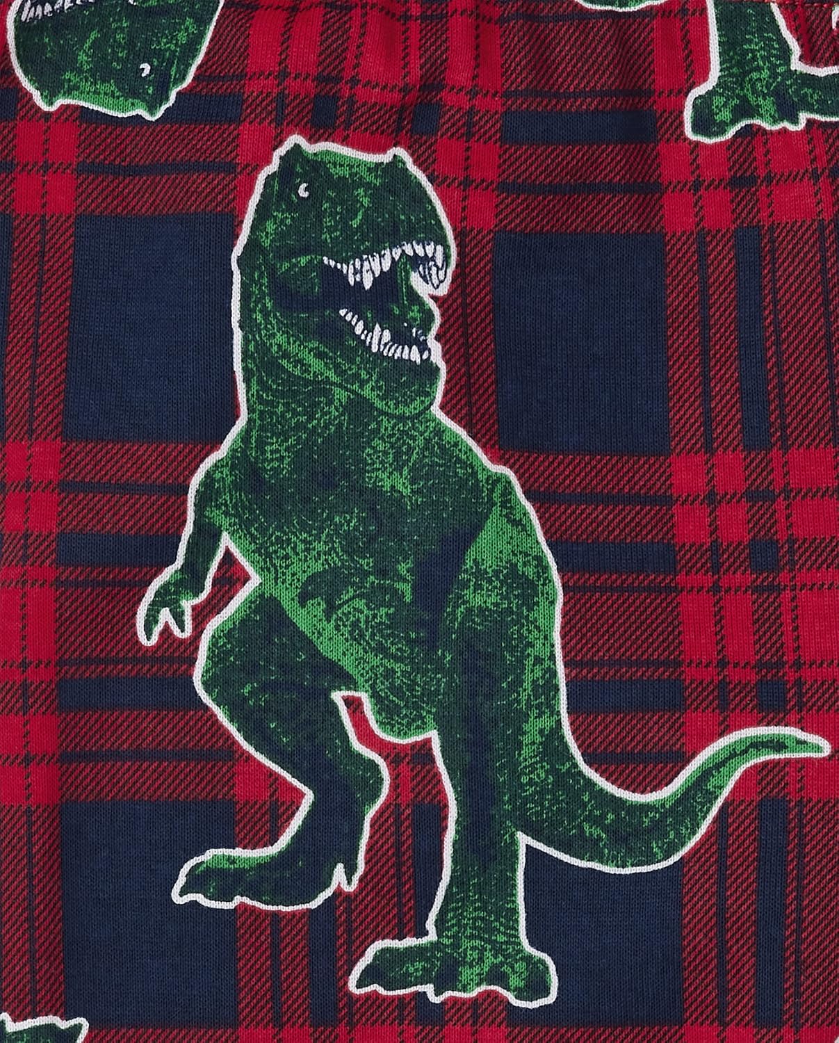 - PAJAMA PANTS — Features pull-on elasticized waistband and allover plaid and dino print