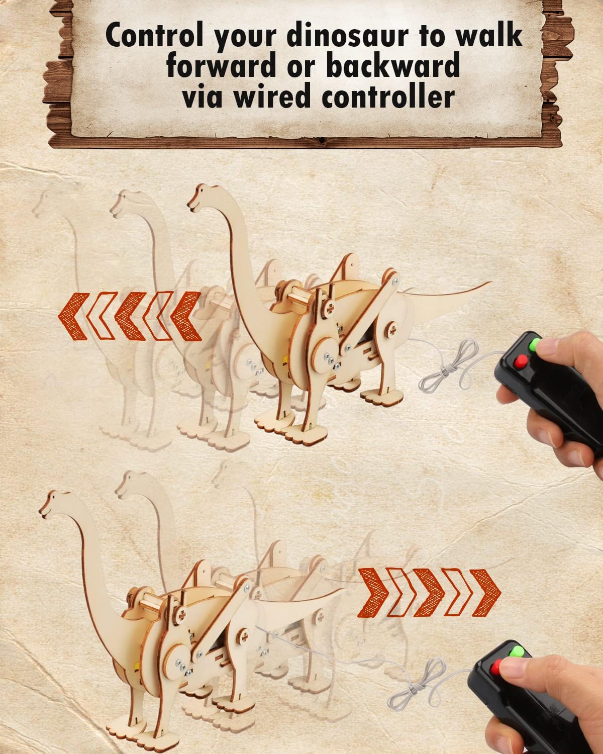 - Unique design: DIY STEM toys for ages 8-13 with wire controllers, allowing the dinosaur to move forward and backward. These wooden dinosaurs can be painted and decorated making them a unique craft kit.