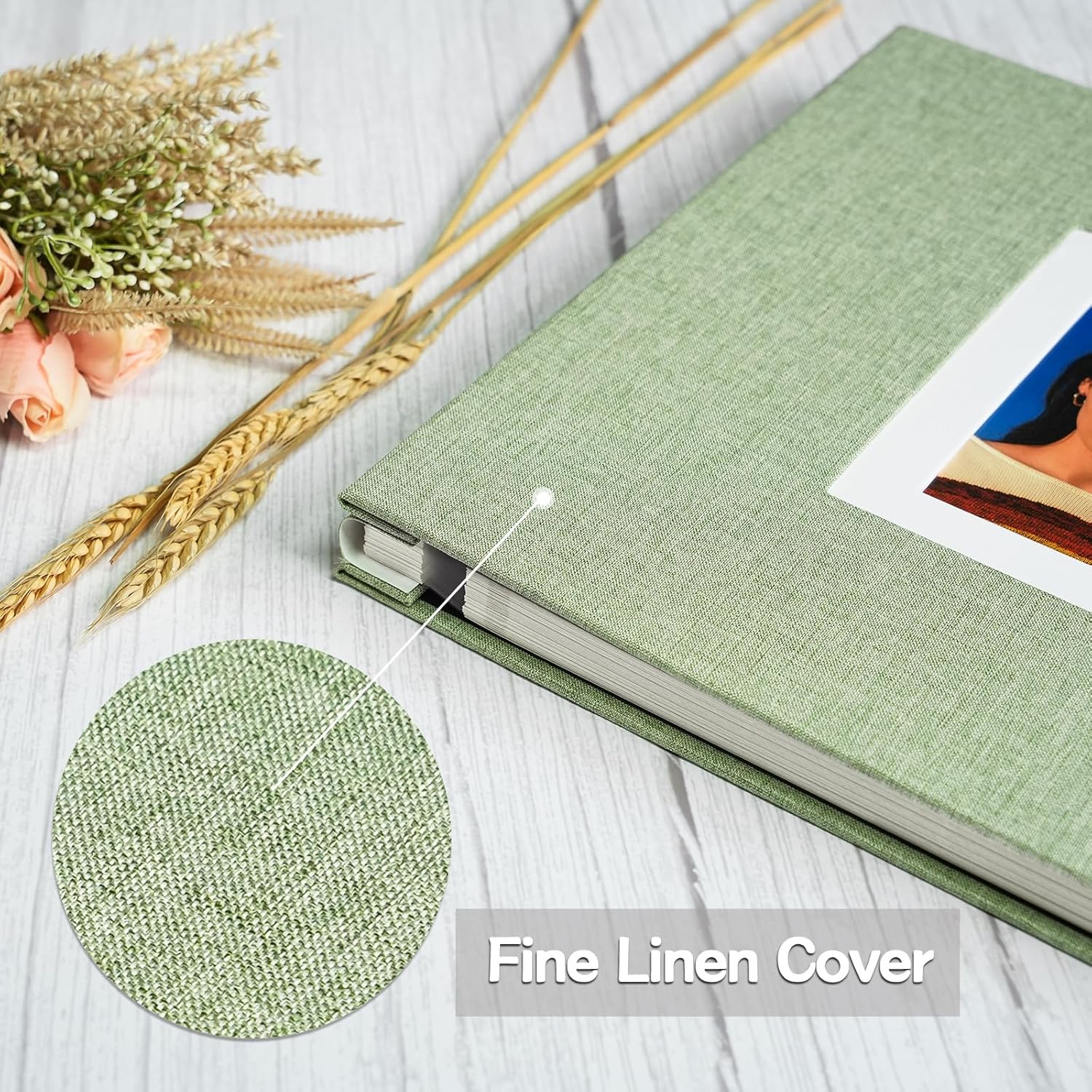Vienrose Photo Album Self Adhesive for 2x3 4x6 5x7 8x10 Pictures DIY Scrapbook 60 Blank Pages Linen Cover Memory Book for Wedding, Baby Growth, Travel, Grassgreen