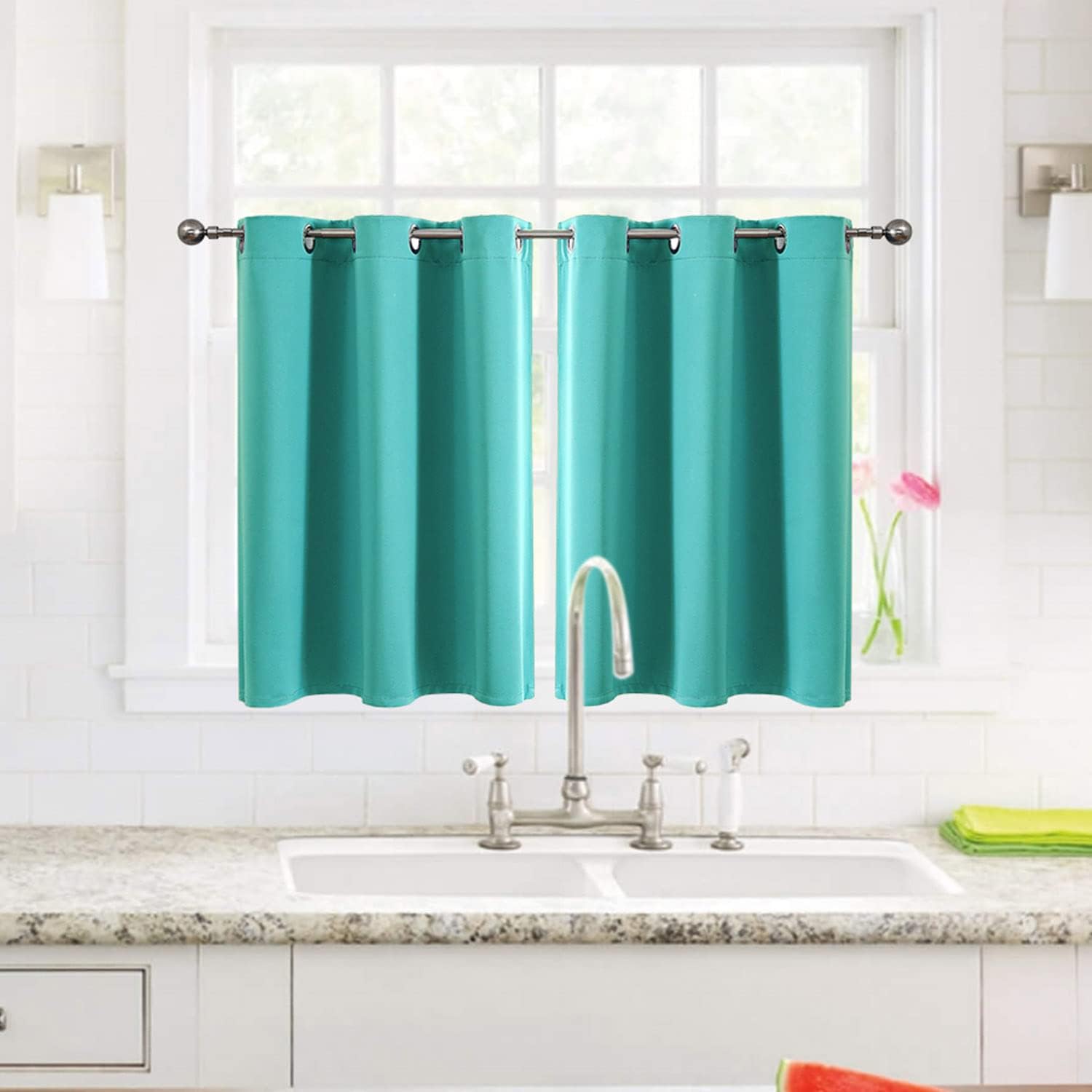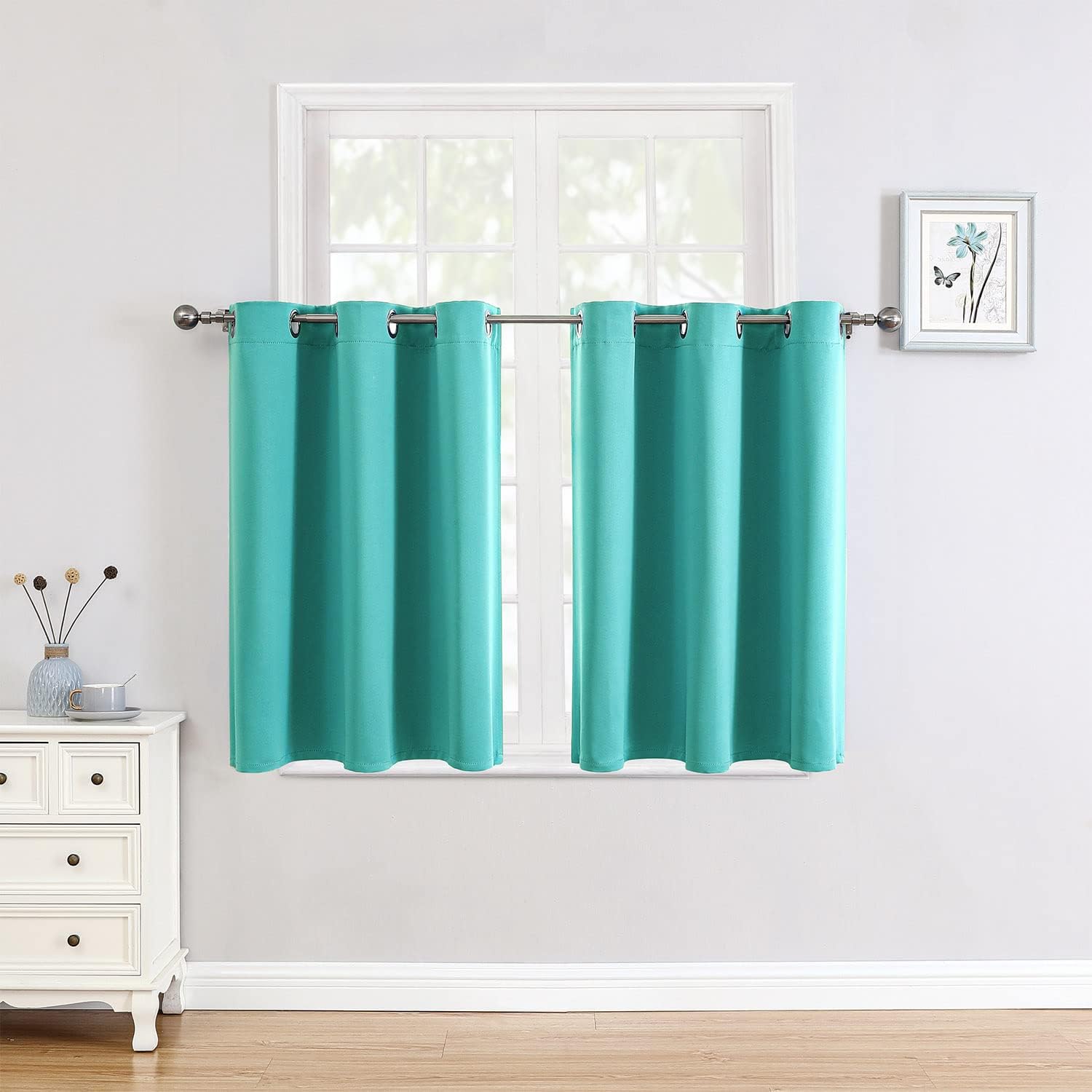 ChrisDowa Small Window Curtains for Kitchen and Bedroom - Grommet Short Thermal Insulated Room Darkening Curtains (2 Panels, Teal, 42 x 36 Inch)