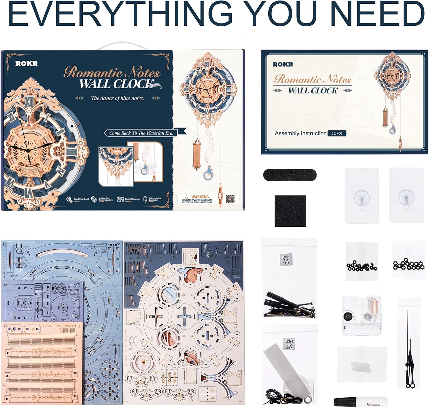 - √PREMIUM PACKAGE - The package almost includes everything you need: pictrial instruction, wood sheets, sand paper, clock movement. Great gift box for teens, adults, DIY lovers or clock collectors. (Battery not included.) If you have any question or replacement-part need, we're glad to help.