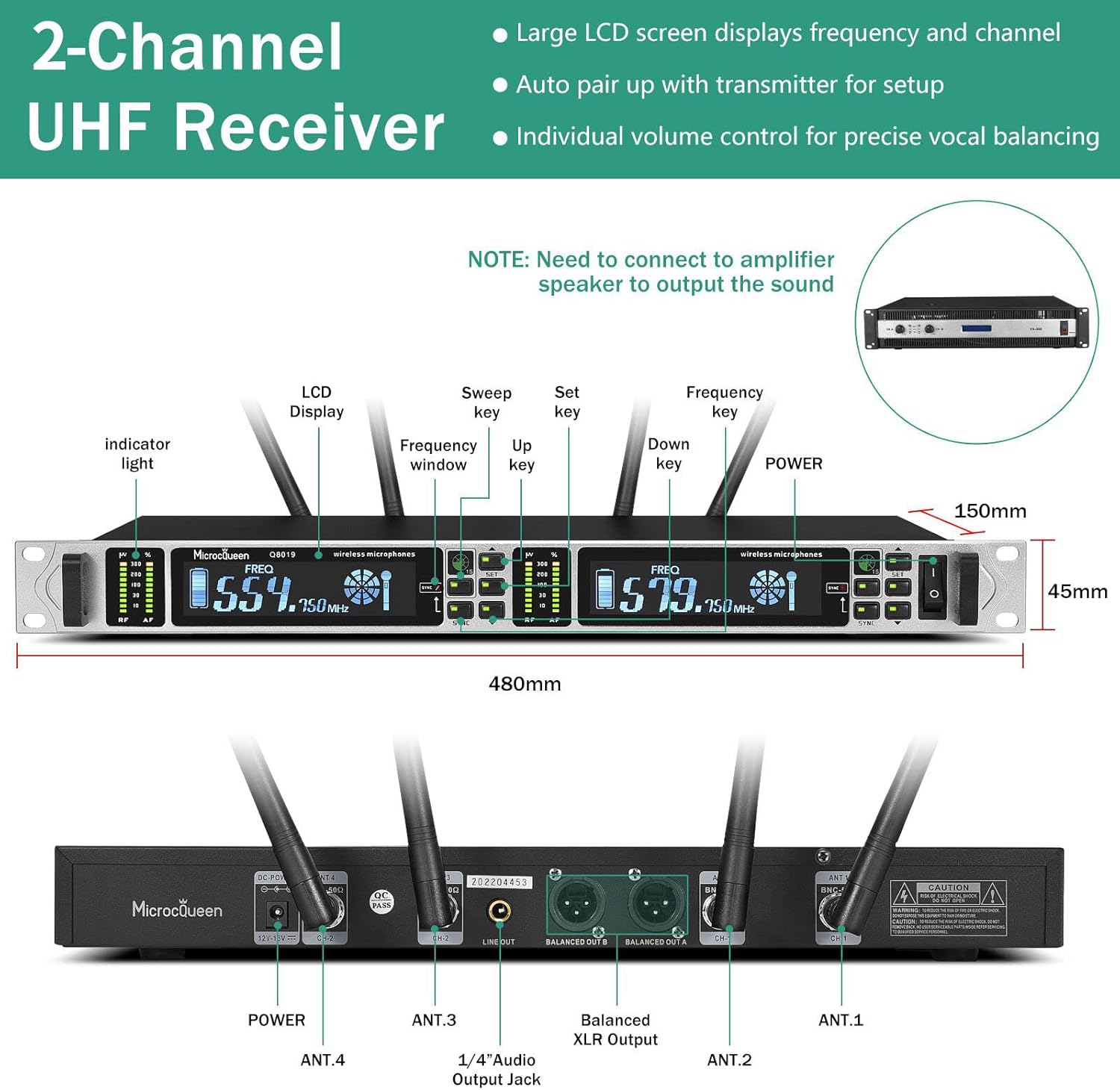 - [Professional Service] The package includes 2 handheld microphones, 1 receiver, 1 power supply, 1 user manual, and the microphones are powered by AA batteries for convenience and easy replacement. Should you encounter any product quality issues or have any other concerns, please don’t hesitate to contact us. We promise to respond to your email within 24 hours.