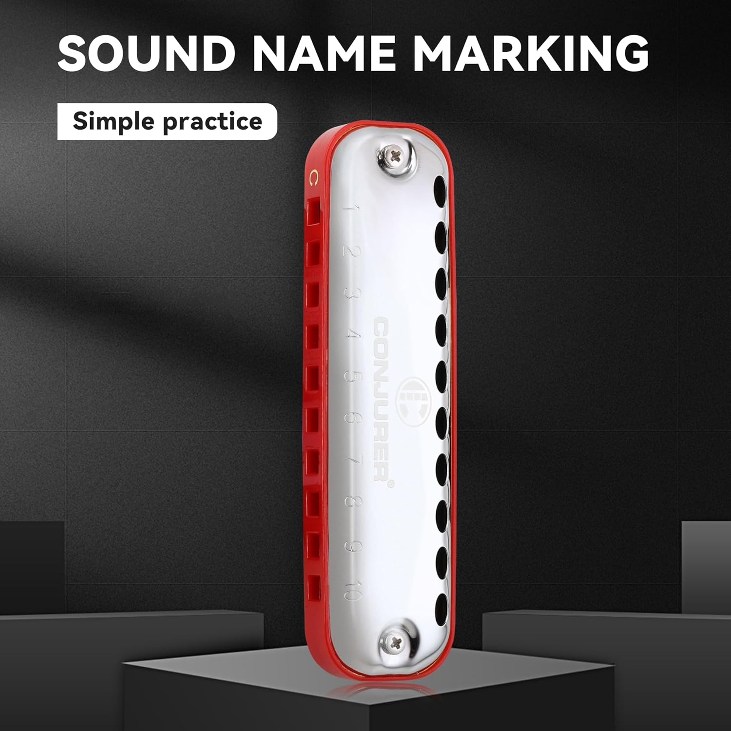 - First harmonica for Child - Each CONJURER harmonica has a matching protective case and has a lovely appearance and sound. The CONJURER harmonica is the ideal present for youngsters, close friends, or harmonica newbies. The goal of CONJURER company is to make premium harmonicas accessible to everyone who enjoys music. The child's first harmonica is a CONJURER.