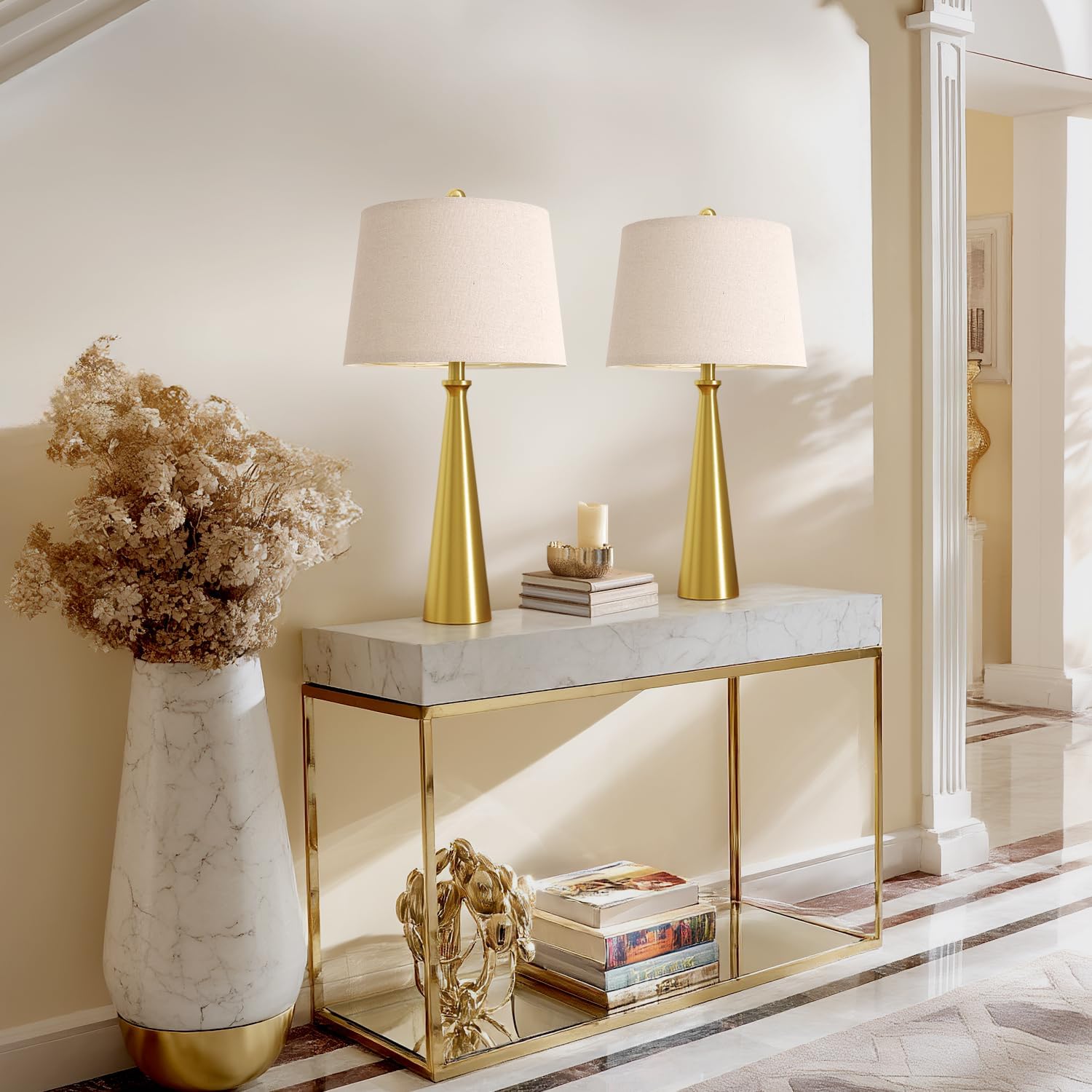 Oneach 25.75" 3-Way Dimmable Touch Control Modern USB Table Lamp Set of 2 for Living Room Bed Room Bedside Nightstand Lamps Fabric Shade Vintage Accent Light Gold Antique Brass