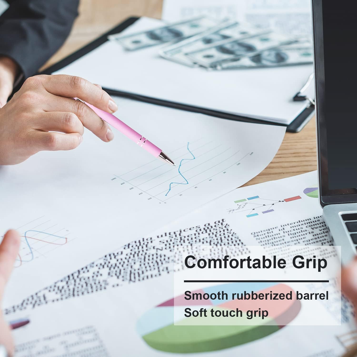 Ballpoint Pen with Stylus Tip, Soft Touch Click Metal Pen, 1.0mm Medium Point, Black Ink, 12 Count(Light Purple)