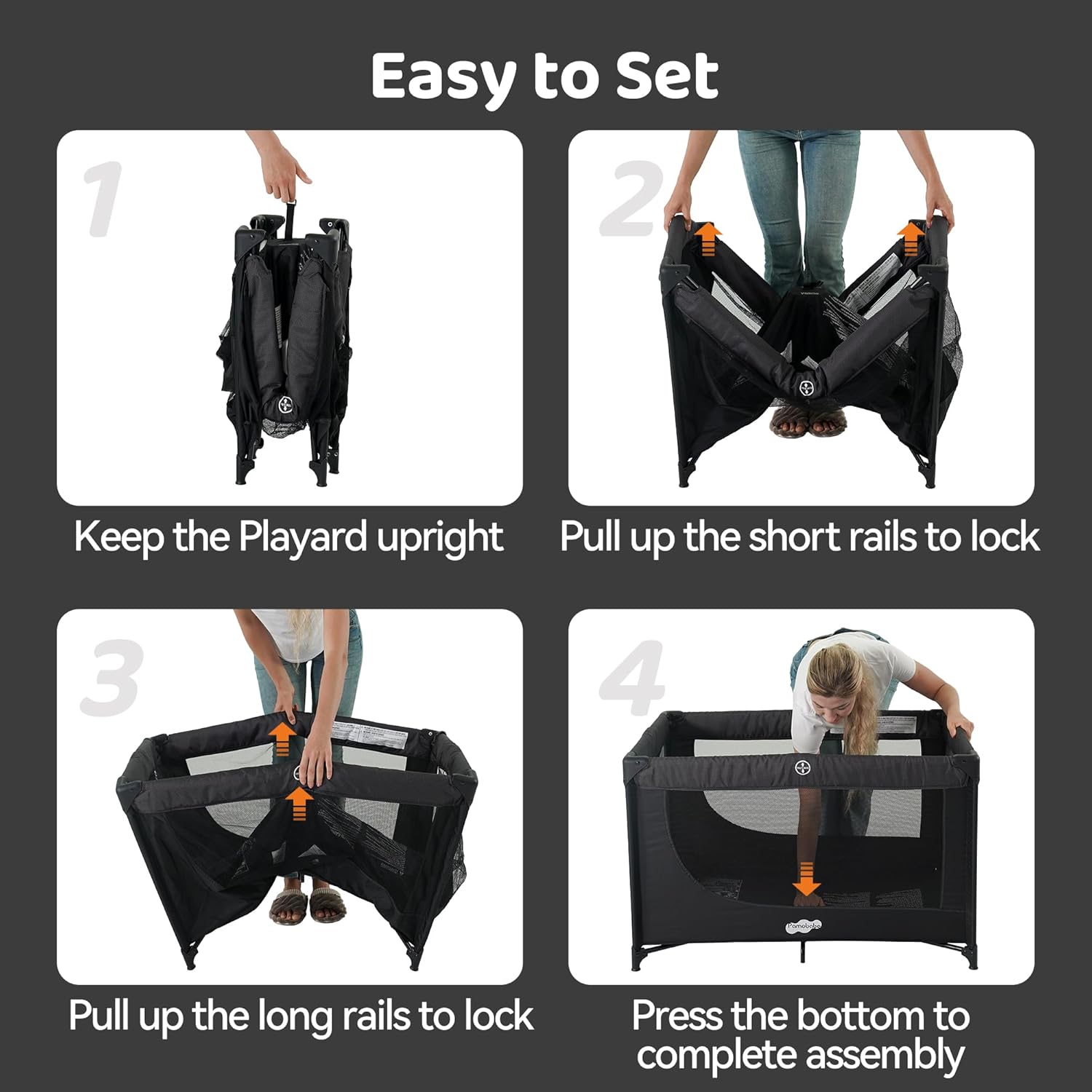 - [Mesh Design with Soft Mattress] Featuring a full mesh design, the playard ensures maximum airflow and visibility for your little one's comfort and your peace of mind. The soft mattress inside also provides ultimate comfort for your baby to sleep inside.