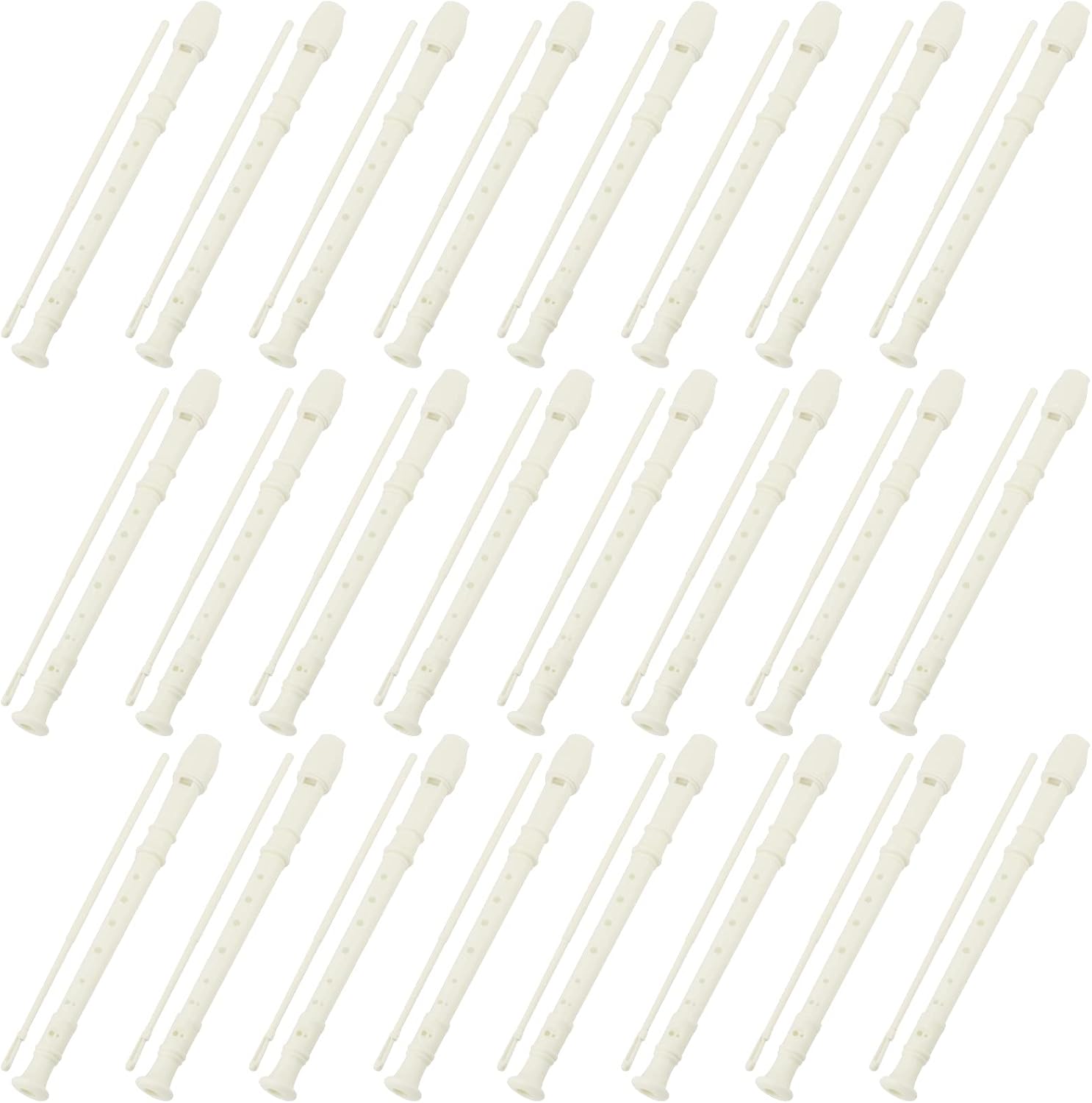 JAPCHET 24 Pack 12 Inch 8 Hole Soprano Recorders, German Style Descant Soprano Recorder, Plastic Descant Flute with Cleaning Rod & Storage Bag, for Graduation, Show, Gift White