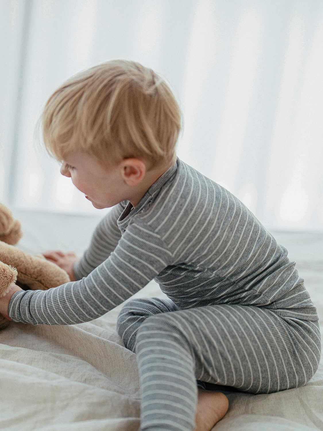 - COMFORTABLE FABRIC - This stylish Stripe Pattern pj set is a perfect blend of multi-functional style and comfort. Viscose is like a smooth material similar to silk breathable, similar to cotton in this regard. Enough to help protect child's delicate skin. That's why pajama set is Easy to dye, light weight, and natural material. It will give perfect fit.