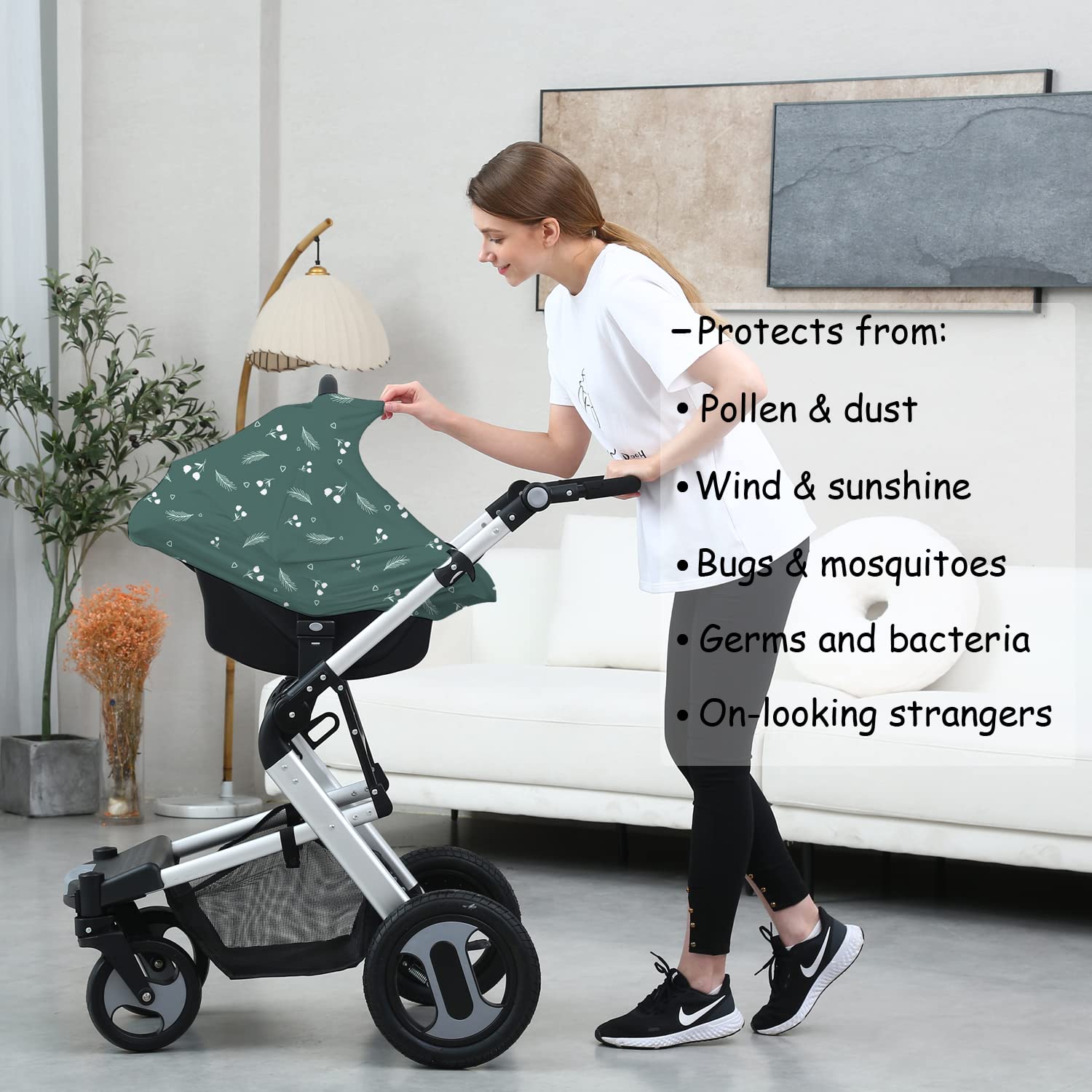 Carseat Covers for Baby Breastfeeding – Multi use Car Seat Canopy Cover, Infant Stroller Canopy Cover for Girls (Green Print)