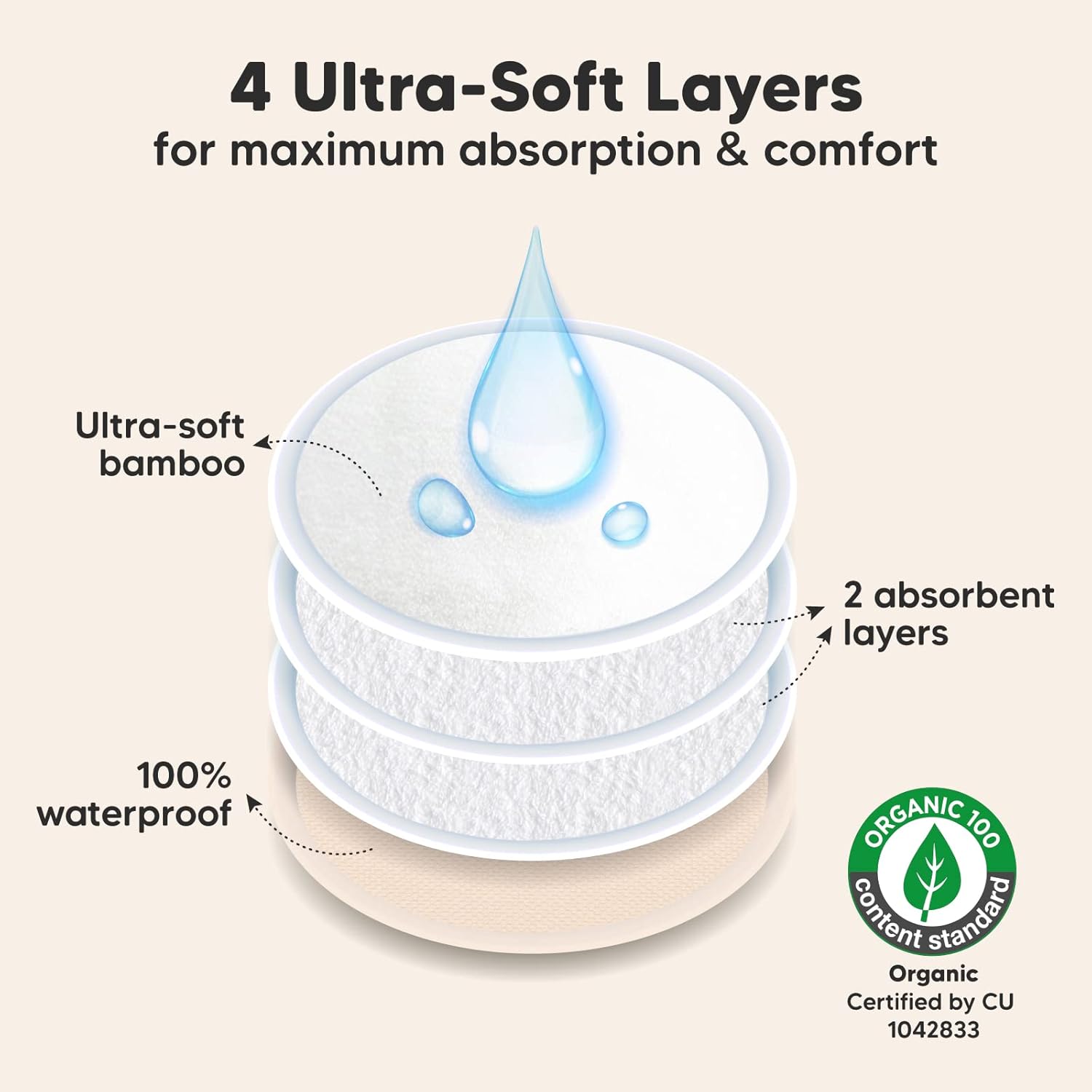 - Great For Leakages – Leakage is a thing of the past with our 4-layer nursing pads. KeaBabies Nursing Pads feature three layers of ultra-absorbent viscose derived from bamboo, sealed with a protective waterproof outer layer for extra security on the nipple pads. Tip: If you experience a heavy flow, please replace breast pads every 5-6 hours.
