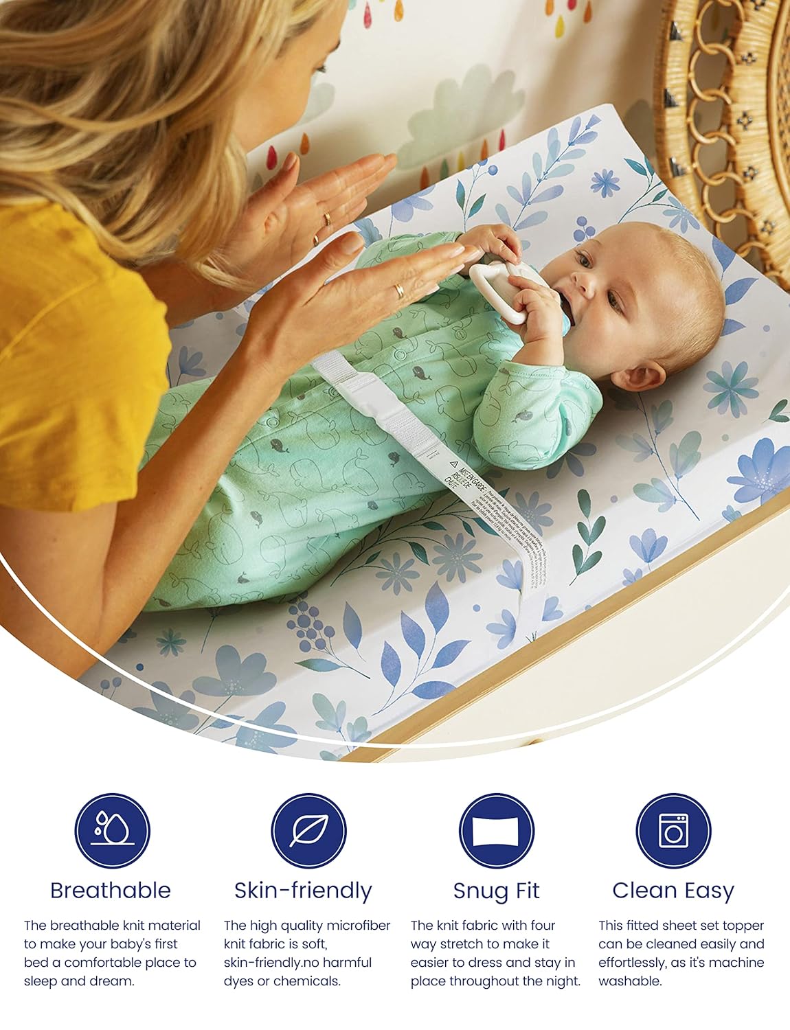 - CLEAN SHEETS. RESTFUL NIGHT: Starring TotCare Fabric, the soft, sustainable and gentle material that makes this changing pad cover set to ensure a good night rest. Your baby will sleep like a pro, you will sleep like a baby.