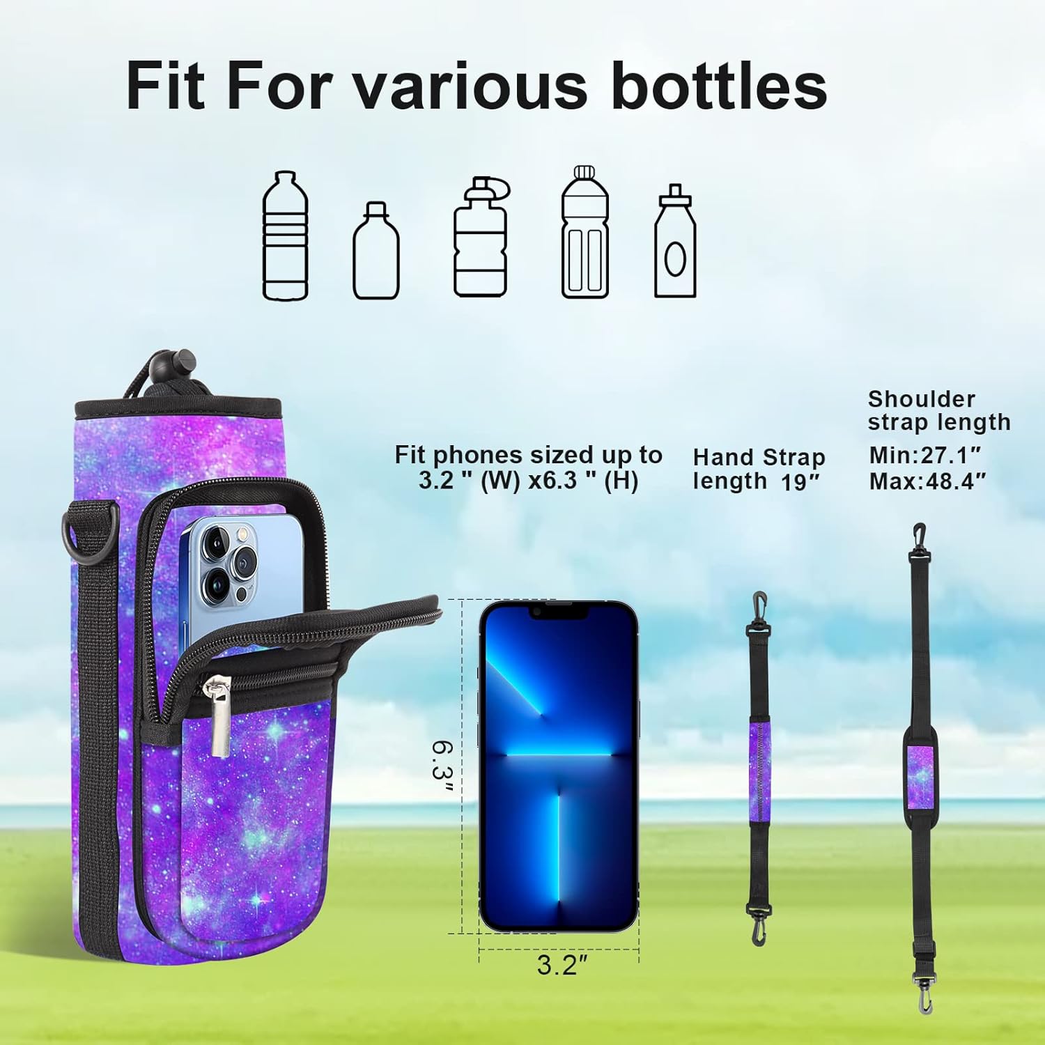 25/32/40/64oz Water Bottle Bag Holder Carrier-Insulated Crossbody Sling Case Sleeve with Strap & Pockets for Men Women Gym Cycling Travel Walking Hiking Camping