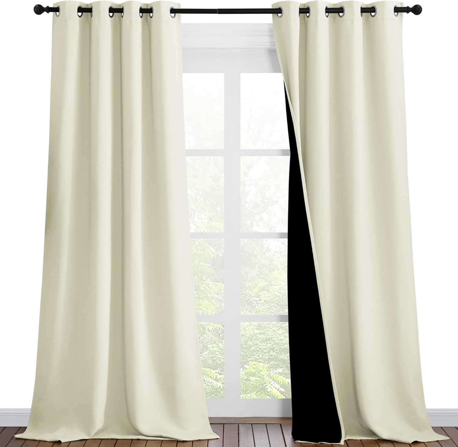 NICETOWN Thermal Insulated 100% Blackout Curtains, Noise Reducing Performance Drapes with Black Lining, Full Light Blocking Drapery Panels for Patio (Beige, 1 Pair, 46 inches x 90 inches)