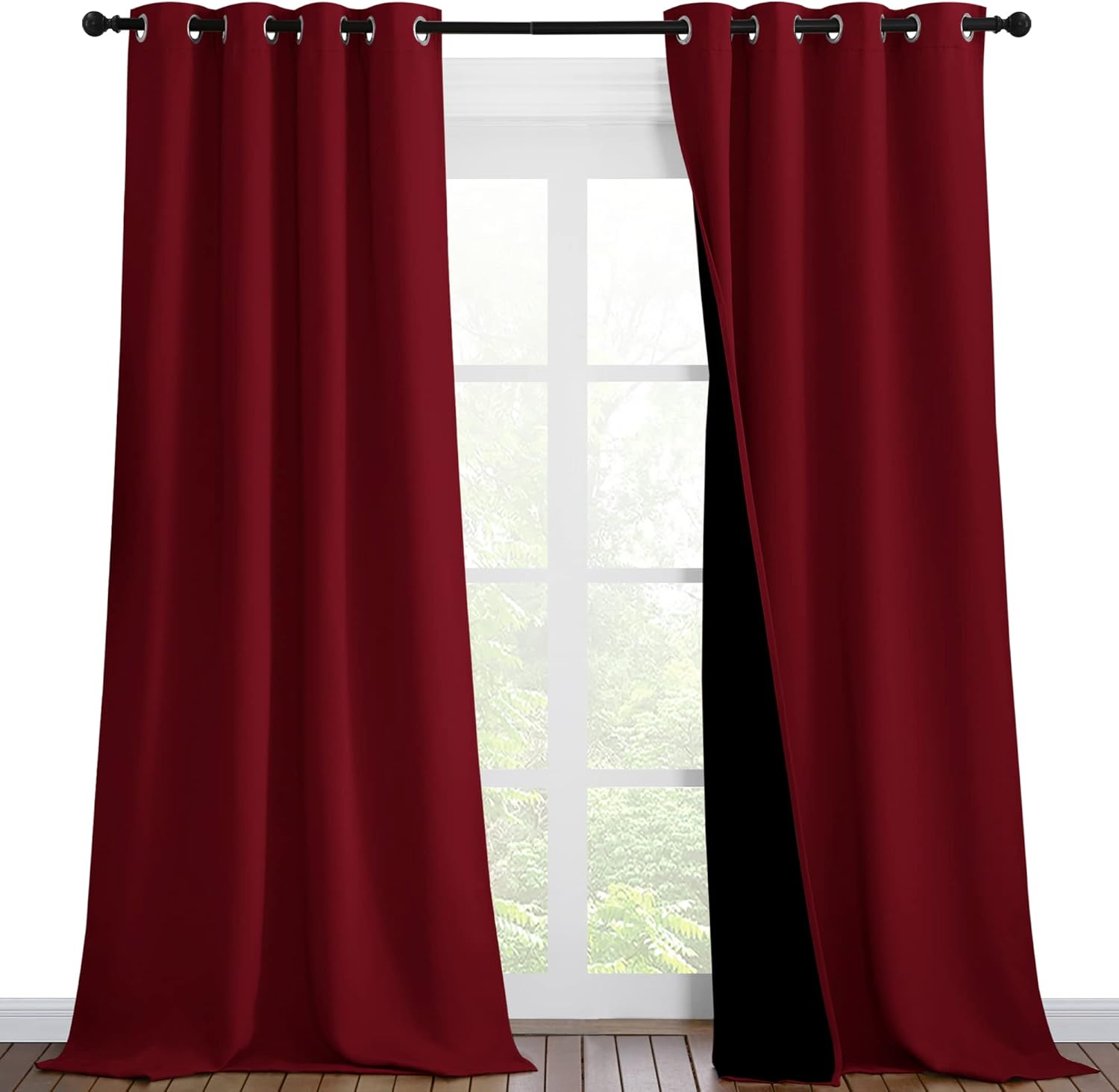 NICETOWN Truly Blackout Drapes for Living Room, Heavy-Duty Full Light Shading Curtain Set with Black Liner Backing for Villa/Hall/Dorm Window(Burgundy Red, Set of 2, 46 inches Wide x 90 inches Long