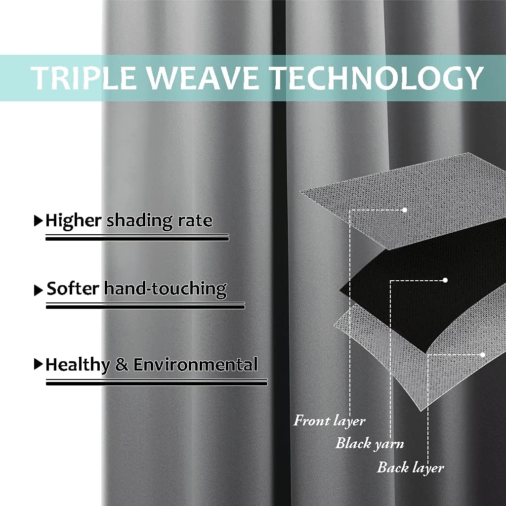 - Unique Design: Draperies constructed with 2 layers are all triple weave blackout fabric, balancing room temperature by insulating against summer heat and winter chill meanwhile protect privacy. No chemical coating, no formaldehyde, bring harmony to your family.