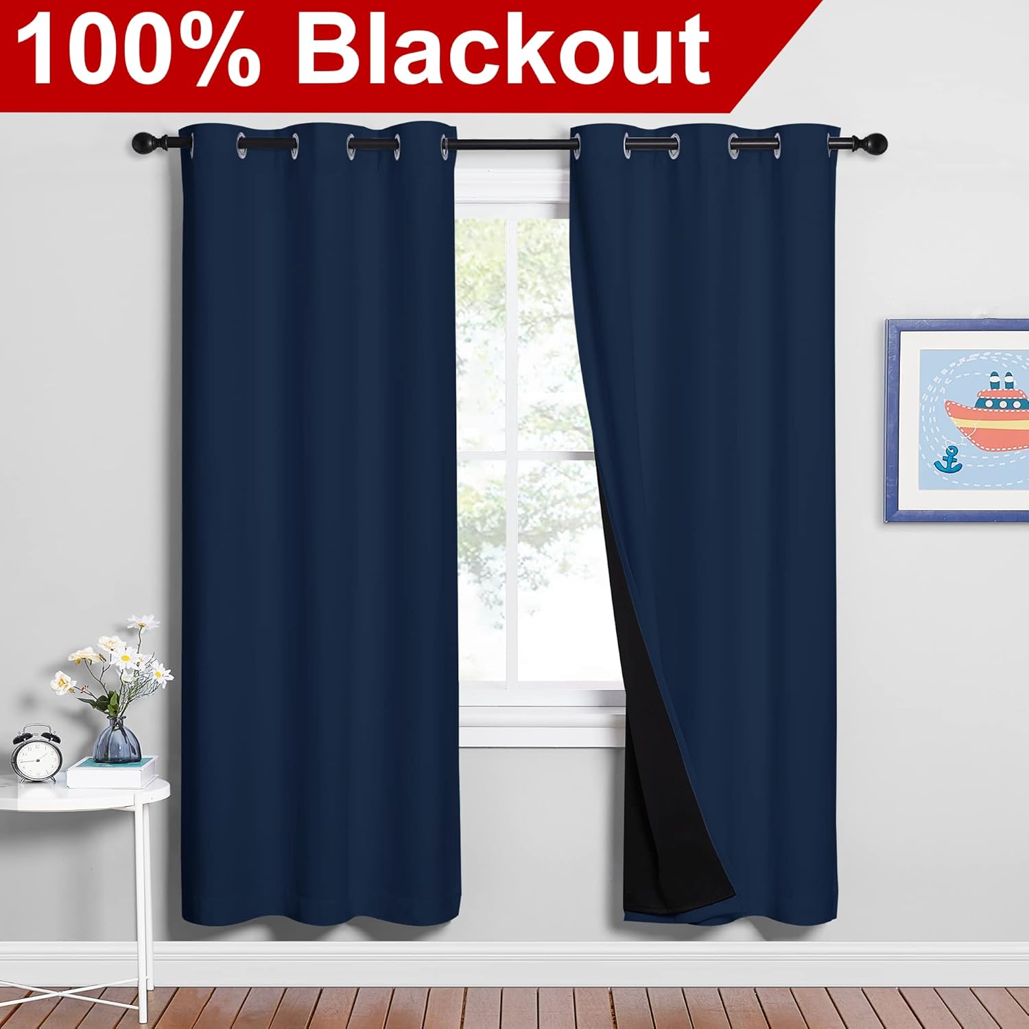 - Blackout Effect: The real blackout curtains on the market. Sew in black liner backing makes the drapes thick enough to completely keep out the sunlight and uv ray. The benefit is to offer you a real dark environment, bringing you a good night's sleep during the day.