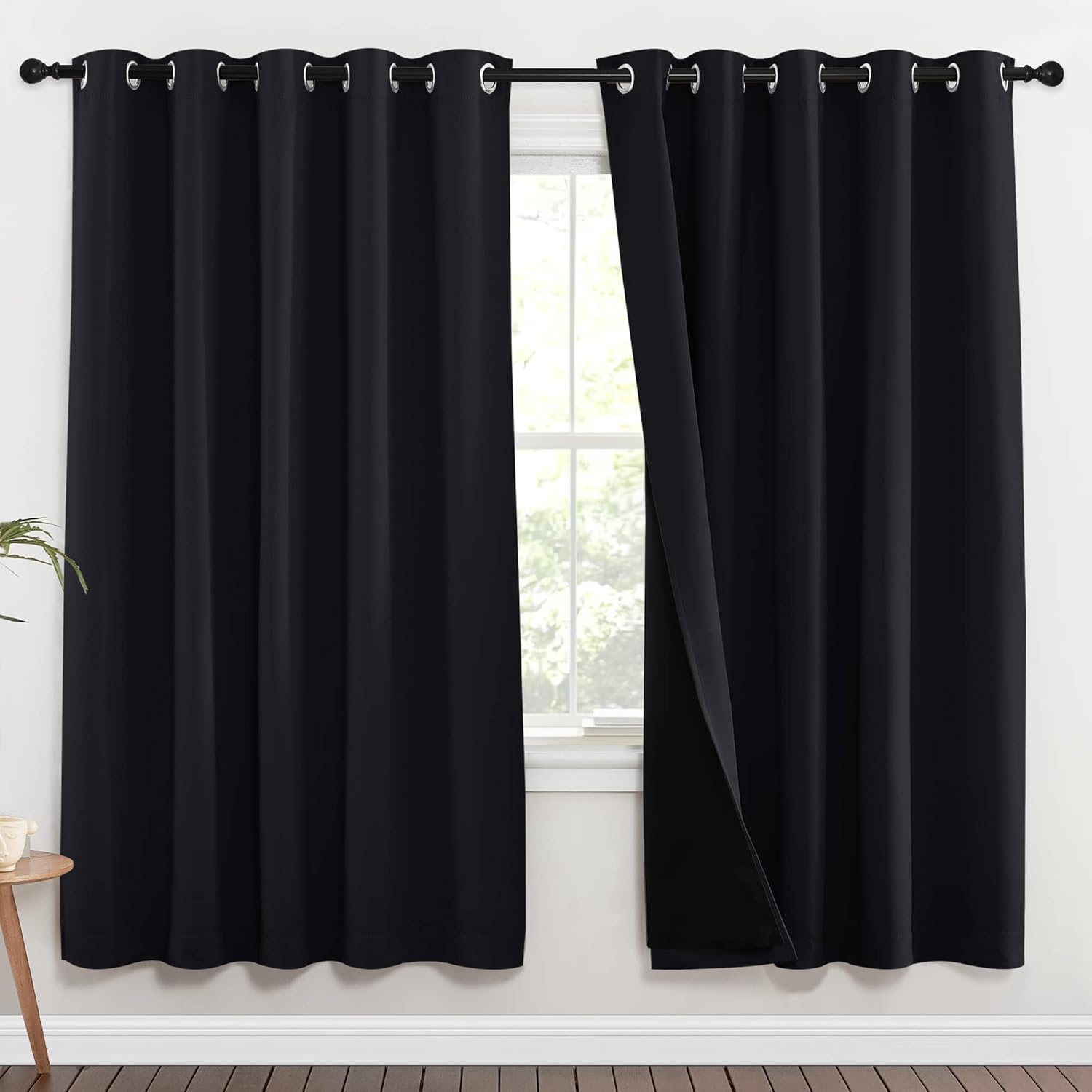 NICETOWN 100% Blackout Window Curtain Panels, Full Light Blocking Drapes with Black Liner for Nursery, 72 inches Drop Thermal Bedroom Drapes and Curtains (Black, 2 Pieces, 70 inches Wide Per Panel)