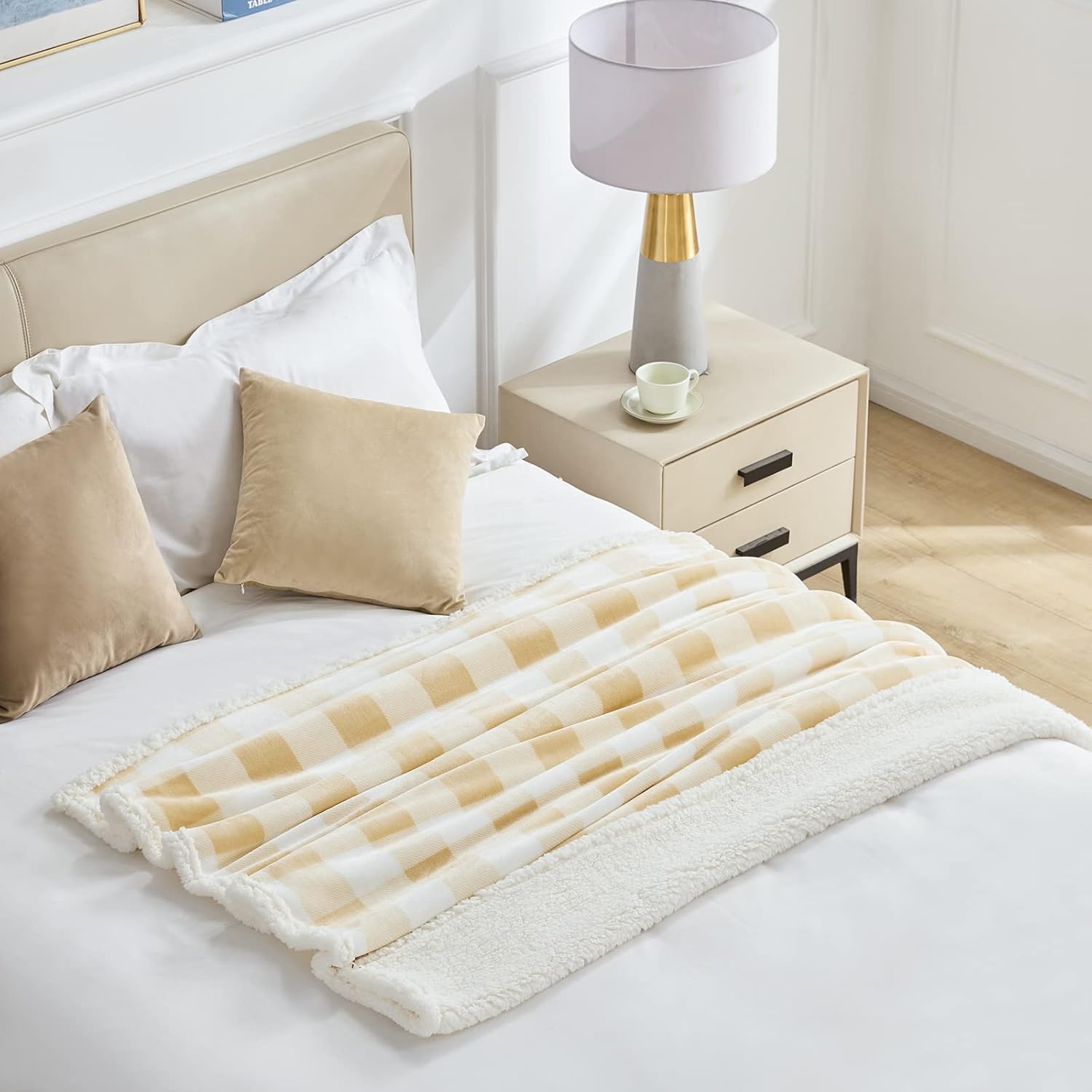Touchat Sherpa Buffalo Plaid Twin Blanket 60" X 70", Fuzzy Fluffy Soft Cozy Throw Blanket, Fleece Flannel Plush Microfiber Blanket for Couch Bed Sofa(Beige)