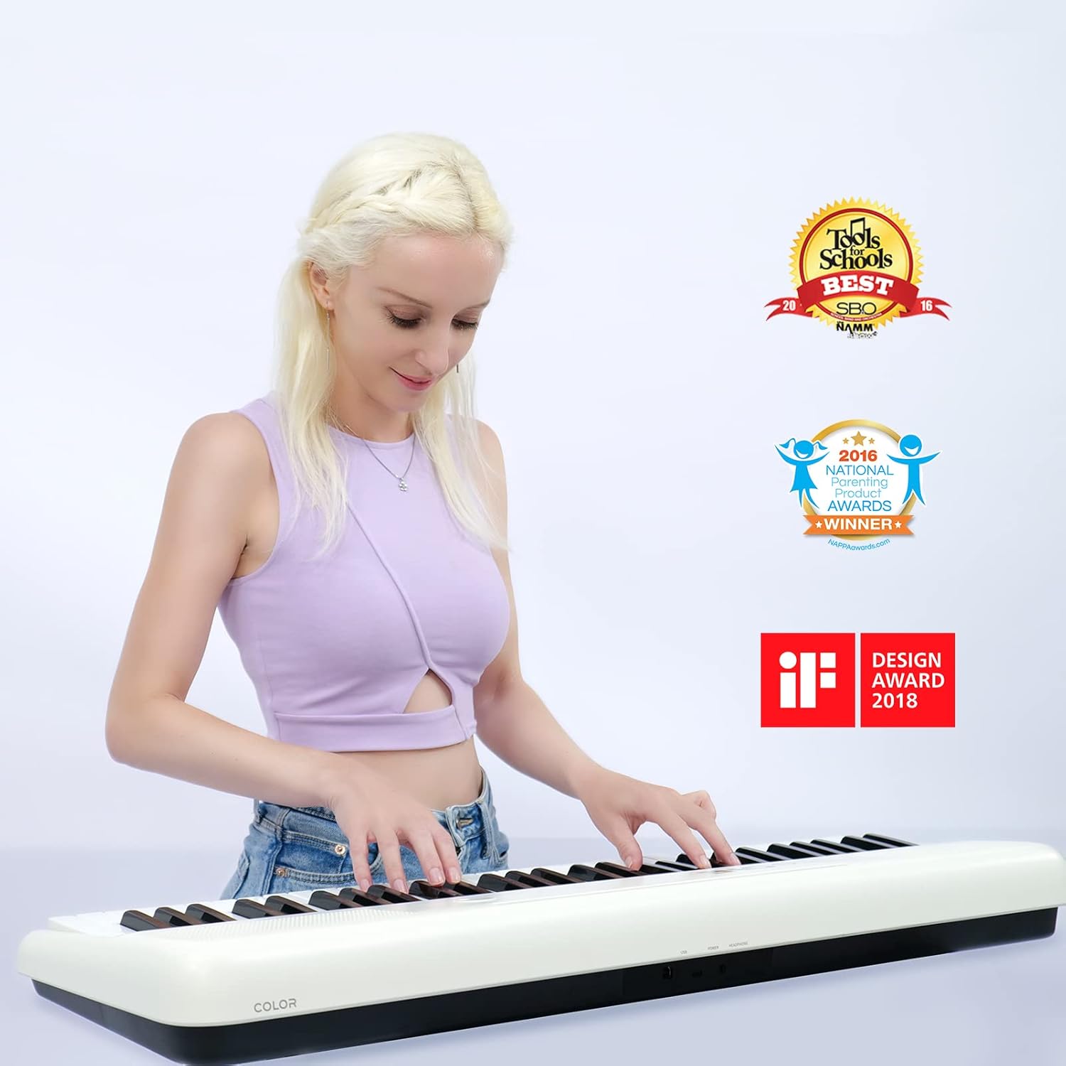 - [Play Anytime Anywhere] The digital piano is lightweight and portable, weighing only about 7.7 lbs. You can power it with either a power supply (included) or 4 AA-batteries that last up to 6 hours. Take The ONE smart keyboard with you when you travel or camp and enjoy music on the go.