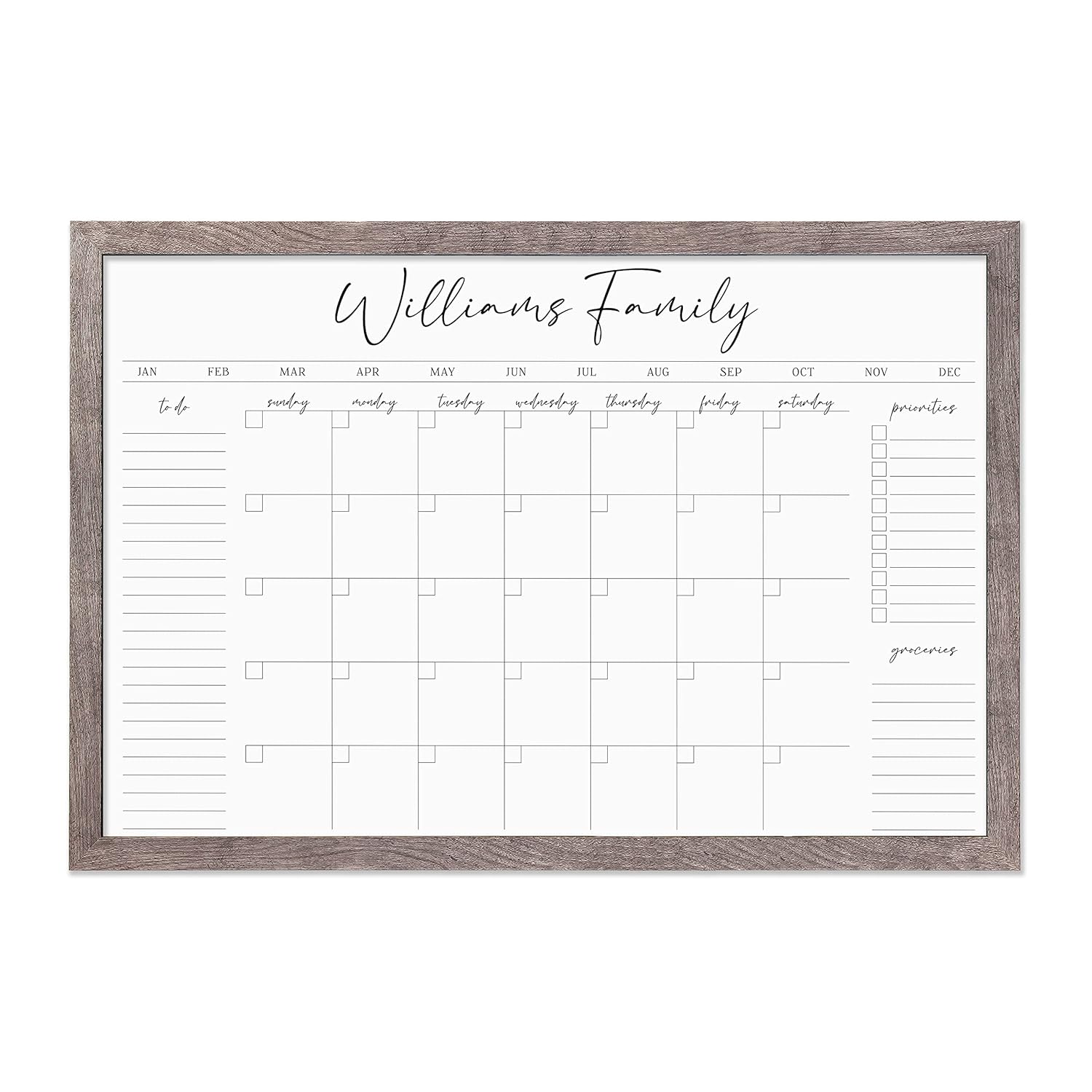 Personalized Dry Erase Wall Calendar with Custom To do list and Notes Organization Sections | Large Whiteboard Calendar (36" W x 24" H, Barnwood Frame)