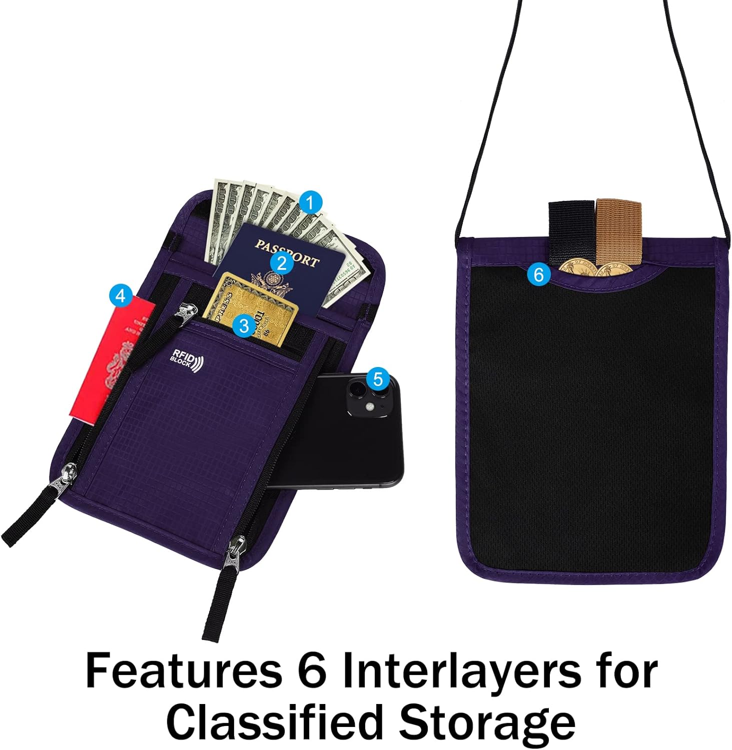 Travel Pouch Neck Wallet Family Passport Holder Organizer Case with RFID Blocking