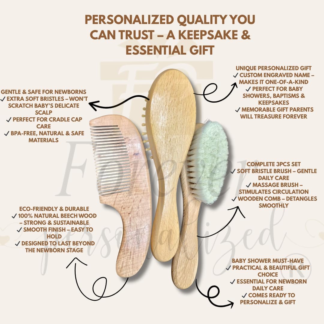 Custom Wooden Baby Brush Set | Personalized Wooden Baby Brush | Personalized Baby Gift Girls | Personalized Baby Gifts | Baby Brush and Comb Set | Custom Baby Gifts | Personalized Gifts