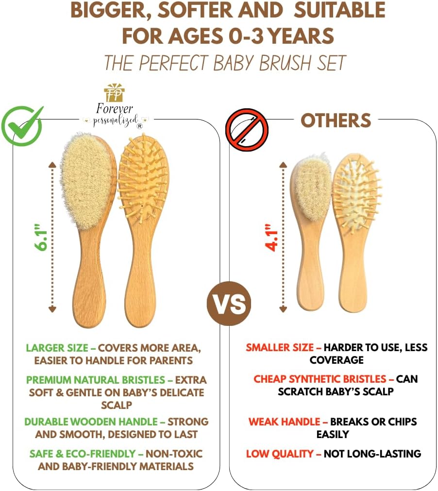 - The natural wooden comb is gentle on tangles and tiny knots. The soft natural bristle brush is gentle on baby's head, helping to remove cradle cap, evenly distribute the hairs natural oils and while being gentle enough to protect baby's soft spot.