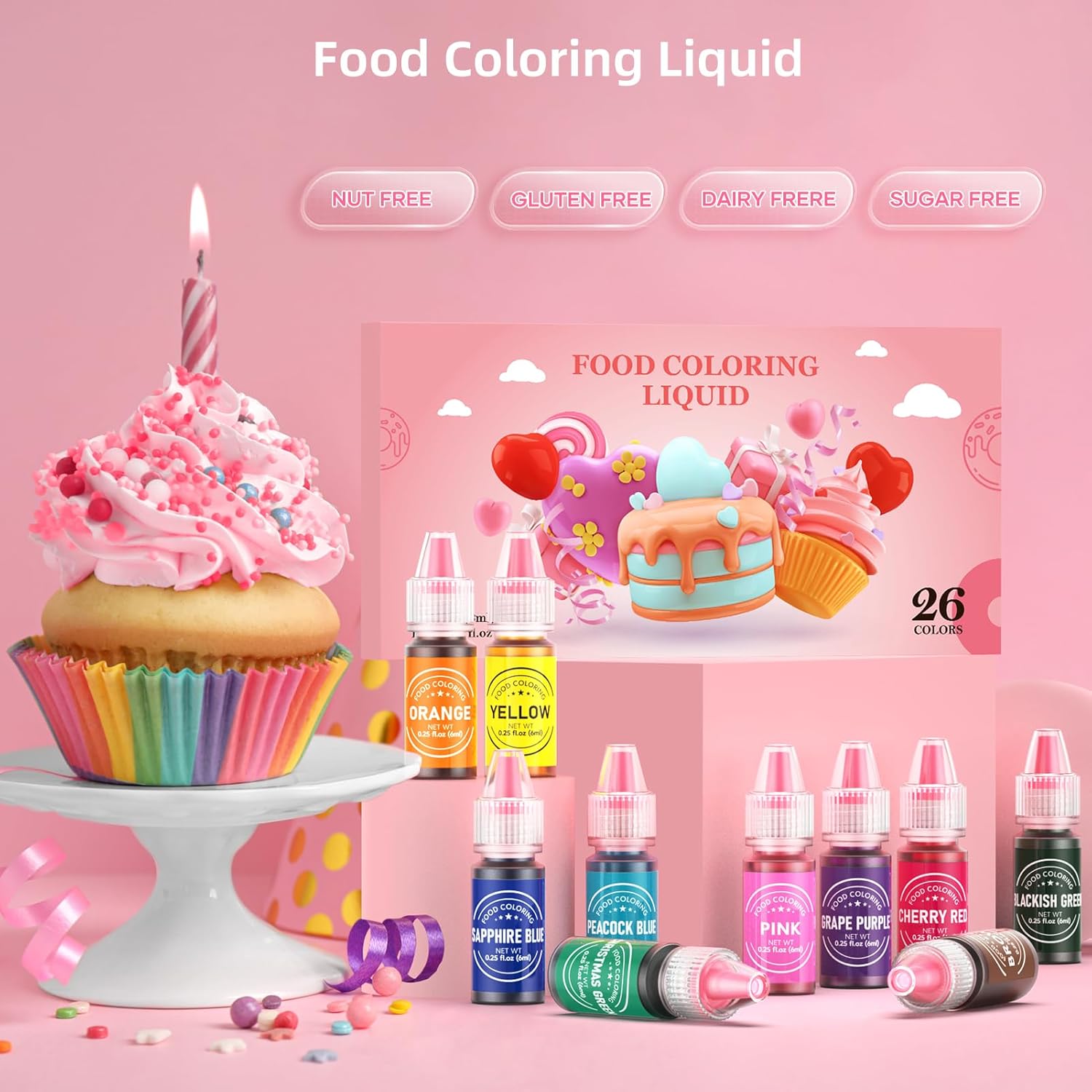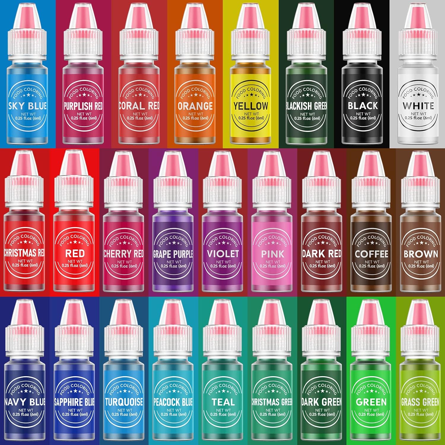 Food Coloring for Baking - 26 Vibrant Cake Coloring Liquid Set for Dessert Decorating, Food Grade Food Dye for Icing,Fondant,Cookies,Easter Egg,Making DIY Supplies Kit- 0.25 Fl. oz (6 ml)/Bottles