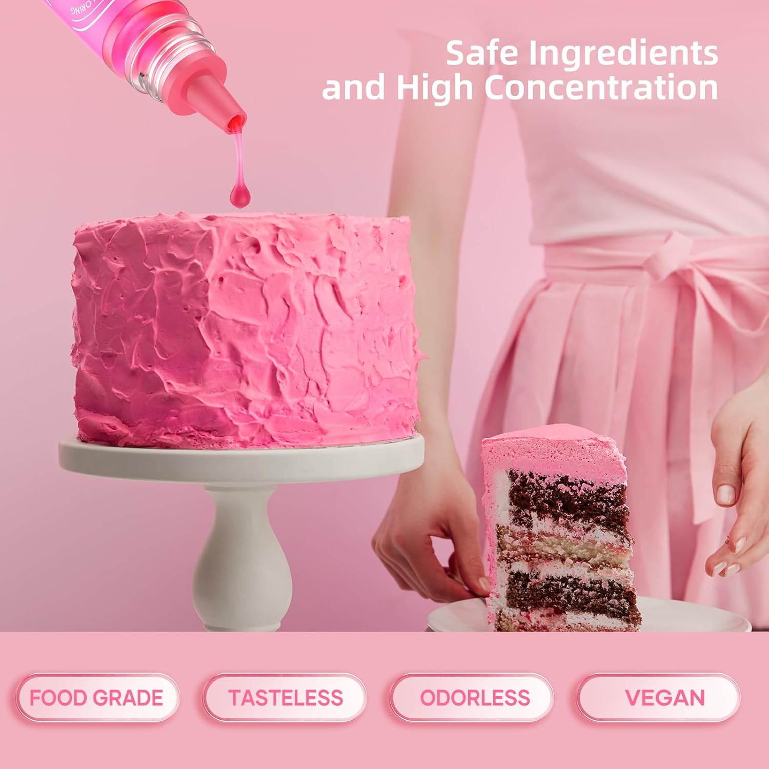 - Strong Tinting Strength - With upgraded highly concentrated formula water based texture,a little of these colors go a long way.The finished food is bright and rich in color, uniform and delicate.What’s more, the liquid food color will not evaporate with moisture when heated or frozen. This food coloring also can be mixed together to create new shades