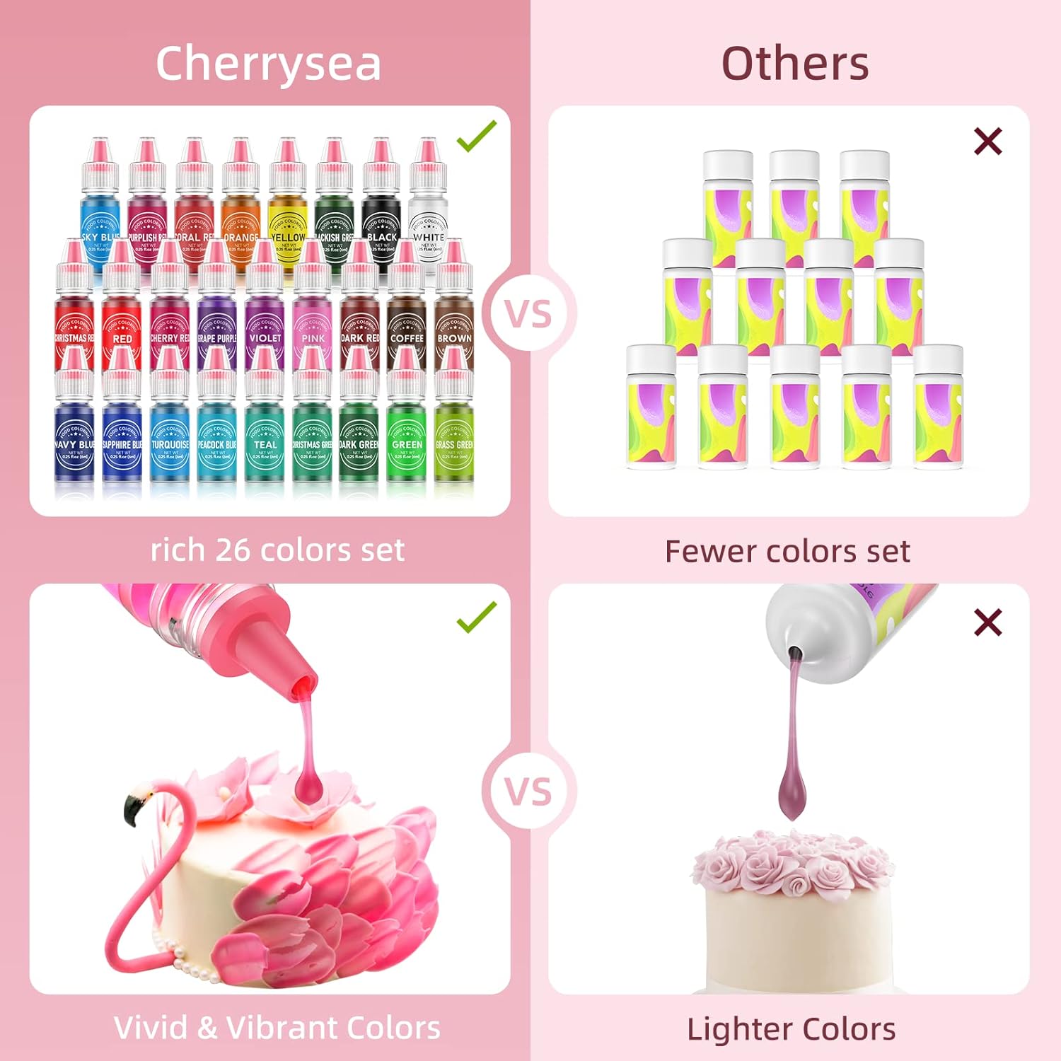 - Food Grade Cake Food Coloring - Approved by MSDS with food grade material.Non-toxic, dairy-free,nut-free and gluten-free. Food coloring set 26 colors are odorless and tasteless.It doesn't change the taste of the food, just makes your desserts more lively and interesting. Any questions about how to add or use our baking food colors, please contact us via Amazon
