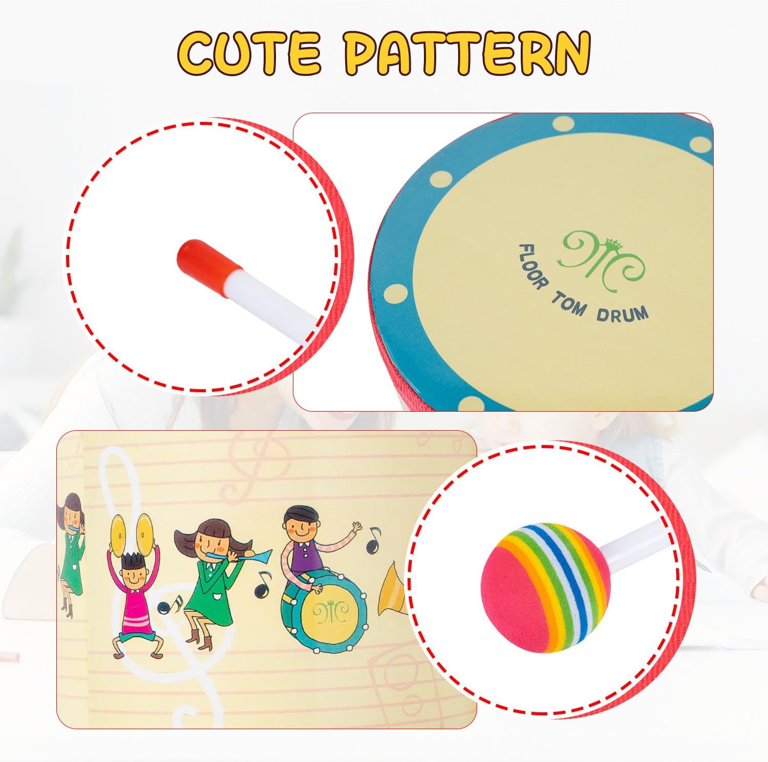 - 2 Ways to Play: Floor drum can be directly hit by hand, and hitting the drum body and drum surface will produce different sounds; Toddler drum set also comes with drumsticks, you can choose different ways to play according to child's preferences. Perfect drum set for toddlers