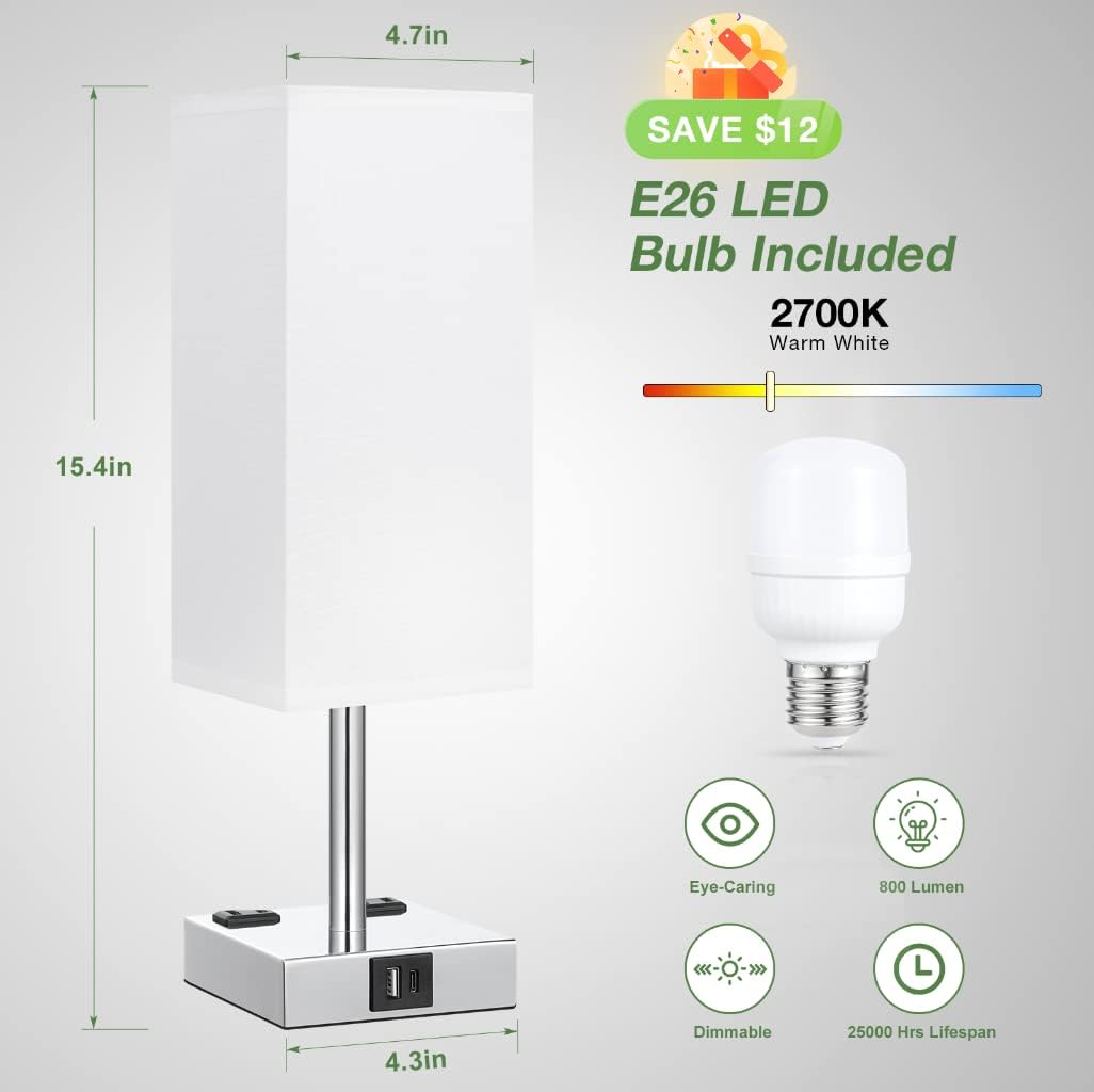 - 2 Energy Efficient LED Bulbs Included - This nightstand lamps set of 2 packed with dual dimmable E26 LED bulbs. NO FLICKER, NO DAZZLE. Equiped with the stylish linen fabric lampshade, these two 3000K warm bulbs can help bring a warmer ambience to our decor lamp which is good for eye-caring.(Note:This table lamp is most compatible with the bulbs we deliver, we do not recommend using other bulbs.)