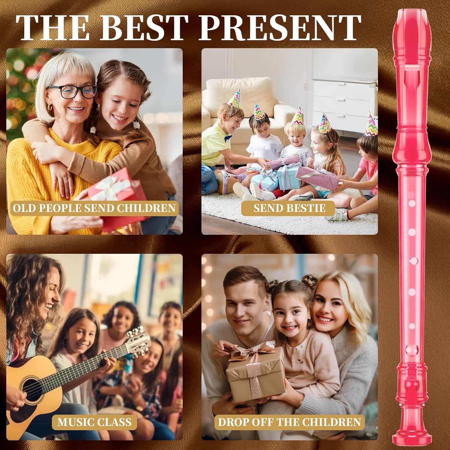 Soprano Recorder Instrument for Kids Beginners Student German Fingering C Key Recorder Instrument 3 Piece with Cleaning Rod and Bag Fingering Chart(Crystal Pink)