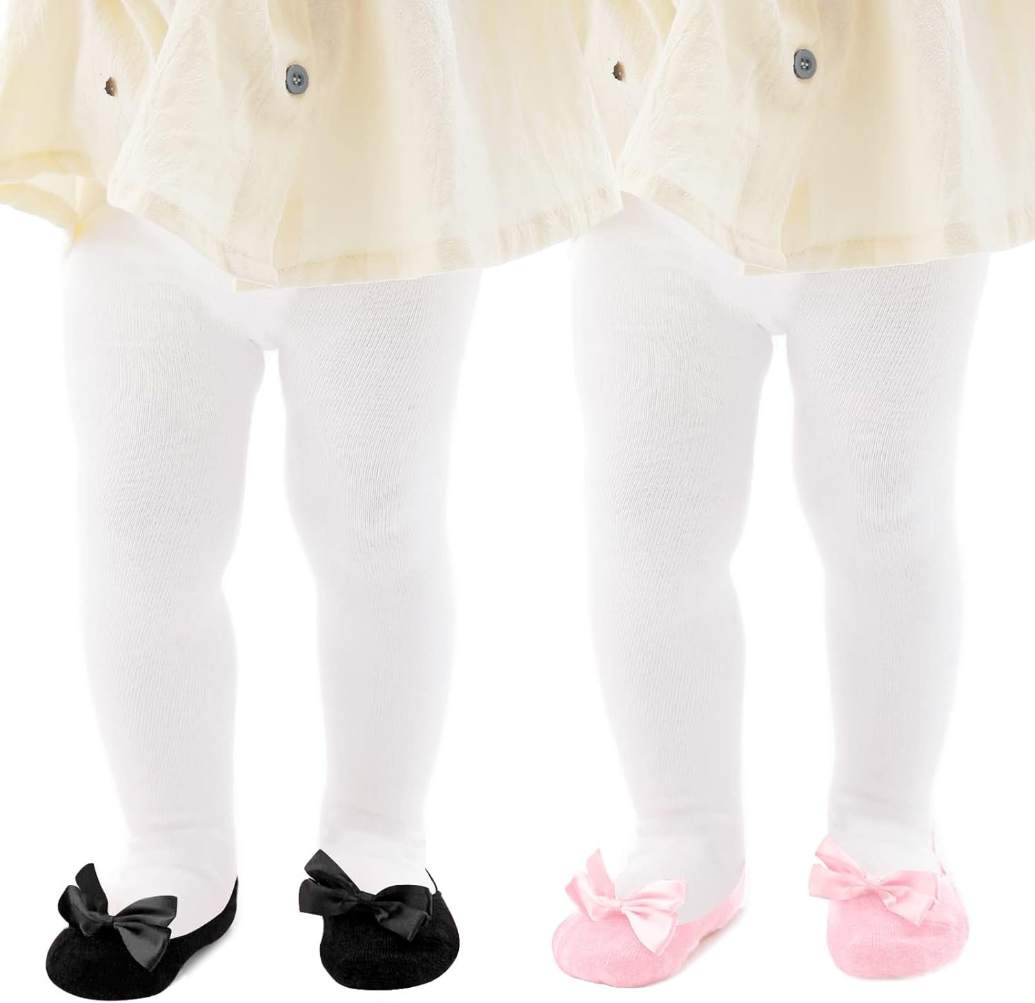 • Shoe-Look Design: The baby girl tights will make your little one looks more adorable with the shoe-look design and the bow around the toes. Also great for kids who hate shoes, you couldn't tell from the pictures that they were socks.