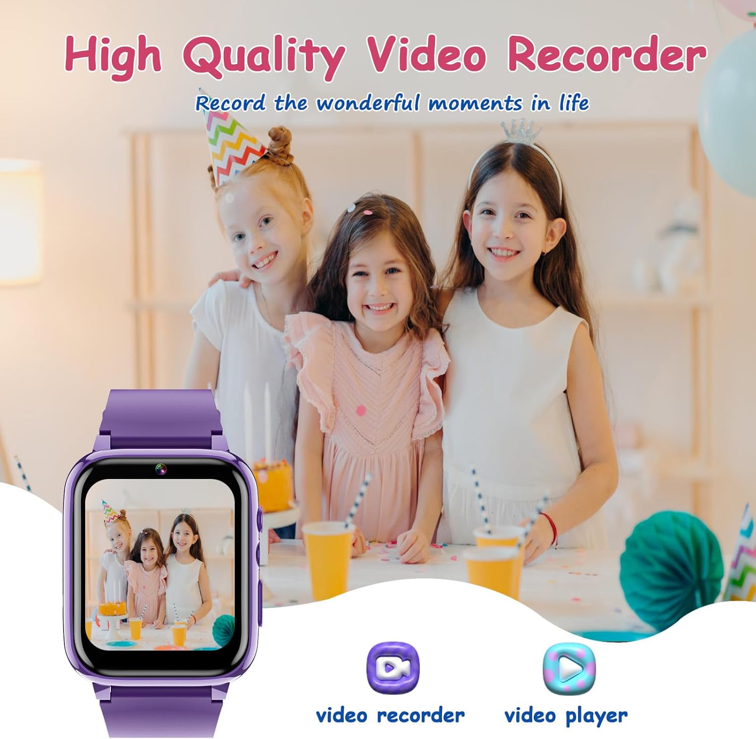 - SMARTWATCH FOR KIDS WITH SCREEN PROTECTORS:Our kids' smartwatch features a 1.69-inch IPS HD color touch screen and includes two screen protectors for extra durability. Equipped with a high-quality HD camera, video andmusic player, 26 puzzle games, pedometer, voice recorder, parent control, and much more! It’s the perfect combination of fun, learning, and convenience for your child.