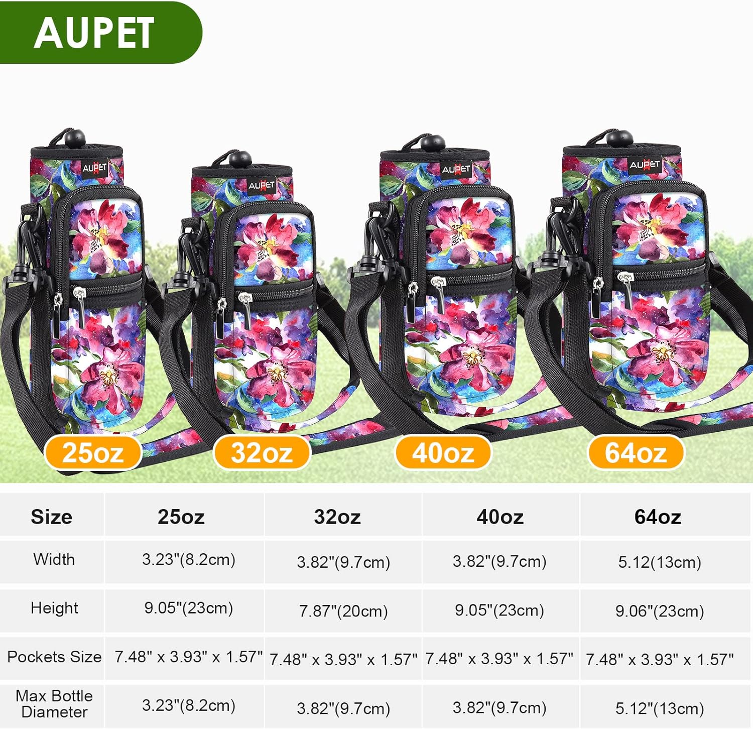 • AVAILABLE IN FOUR SIZES:Our AUPET water bottle crossbody bags has four sizes for you to choose,25oz/32oz/40oz/64oz,please refer to the picture to choose the right size<br/>