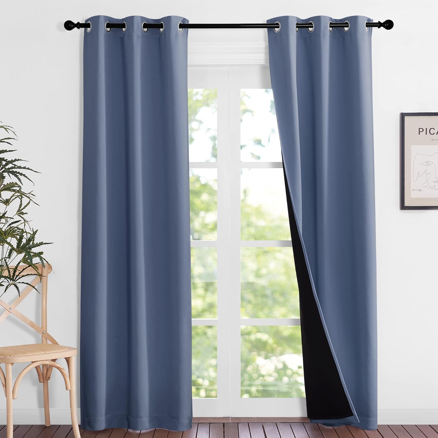 NICETOWN Full Shade Curtain Panels 84 inches Long, Pair of Energy Smart & Noise Blocking Out Blackout Drapes for Guest Room Window, Thermal Insulated Lined Window Dressing (Stone Blue, 37x84)