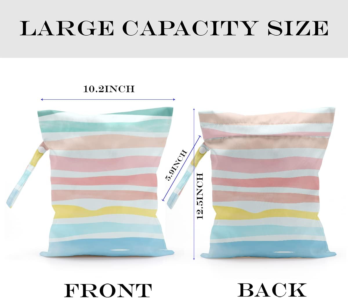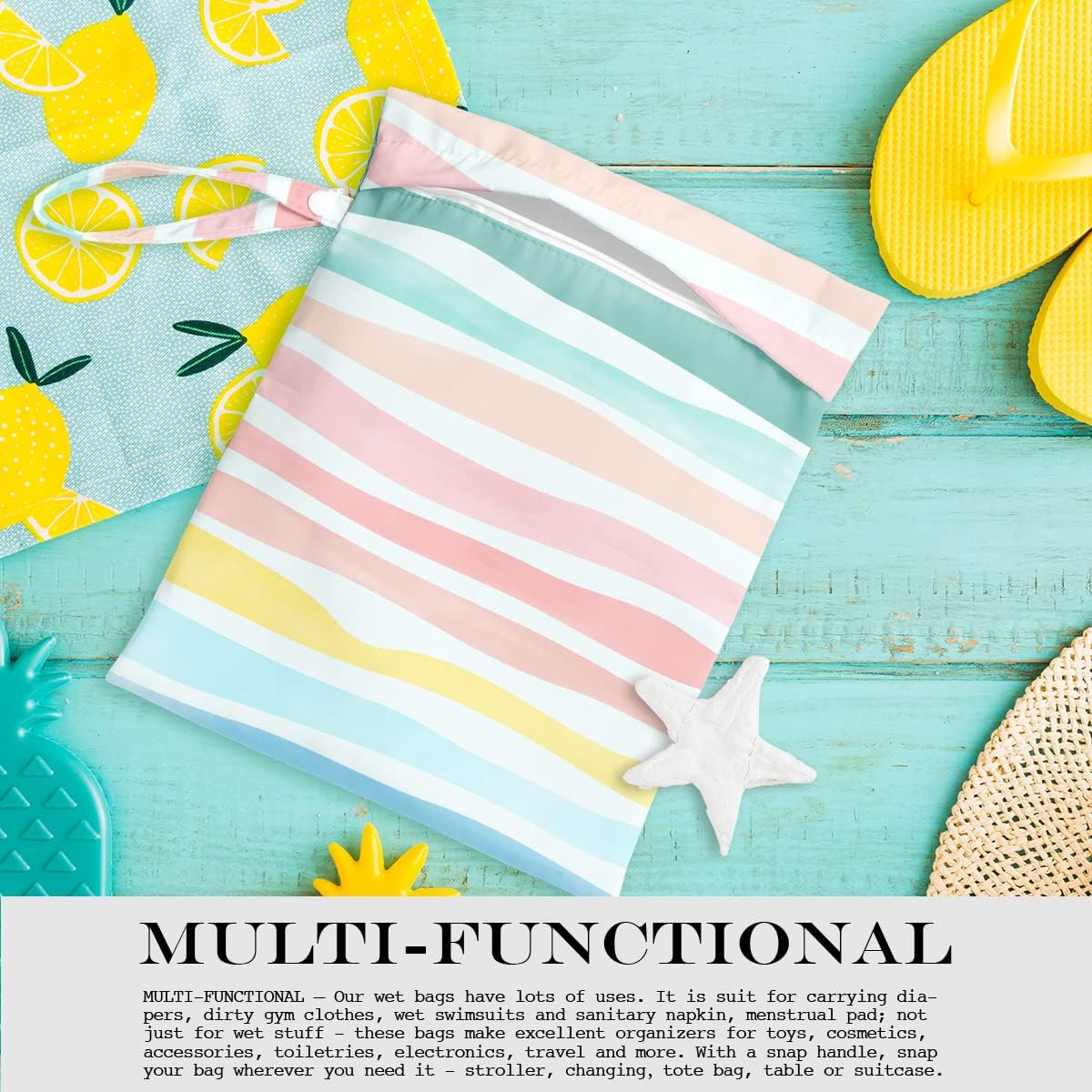 - MULTI-FUNCTIONAL – Our wet bags have lots of uses. It is suit for carrying diapers, dirty gym clothes, wet swimsuits and sanitary napkin, menstrual pad; not just for wet stuff - these bags make excellent organizers for toys, cosmetics, accessories, toiletries, electronics, travel and more. With a snap handle, snap your bag wherever you need it - , changing,tote bag, table or suitcase.