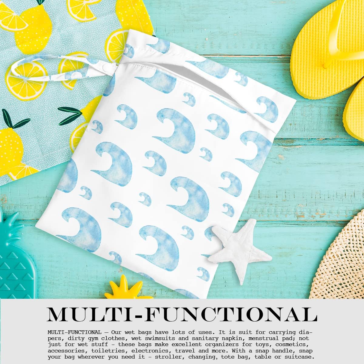 • MULTI-FUNCTIONAL – Our wet bags have lots of uses. It is suit for carrying diapers, dirty gym clothes, wet swimsuits and sanitary napkin, menstrual pad; not just for wet stuff - these bags make excellent organizers for toys, cosmetics, accessories, toiletries, electronics, travel and more. With a snap handle, snap your bag wherever you need it - , changing,tote bag, table or suitcase.