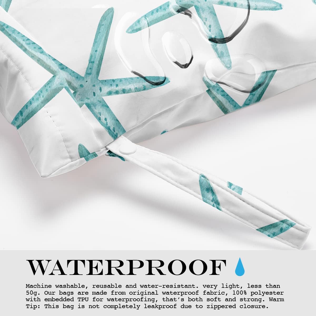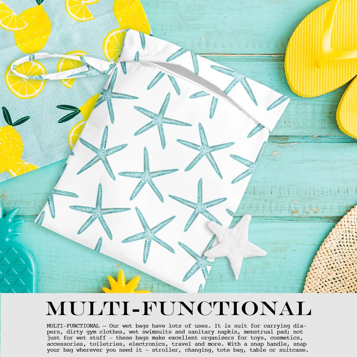 Wet Dry Bag for Swimsuit, Travel, Beach, Pool, Diapers, Dirty Yoga Gym Clothes, Makeup, Waterproof Reusable Beach Bag with Ocean Decor Starfish Sea Horse Anchor